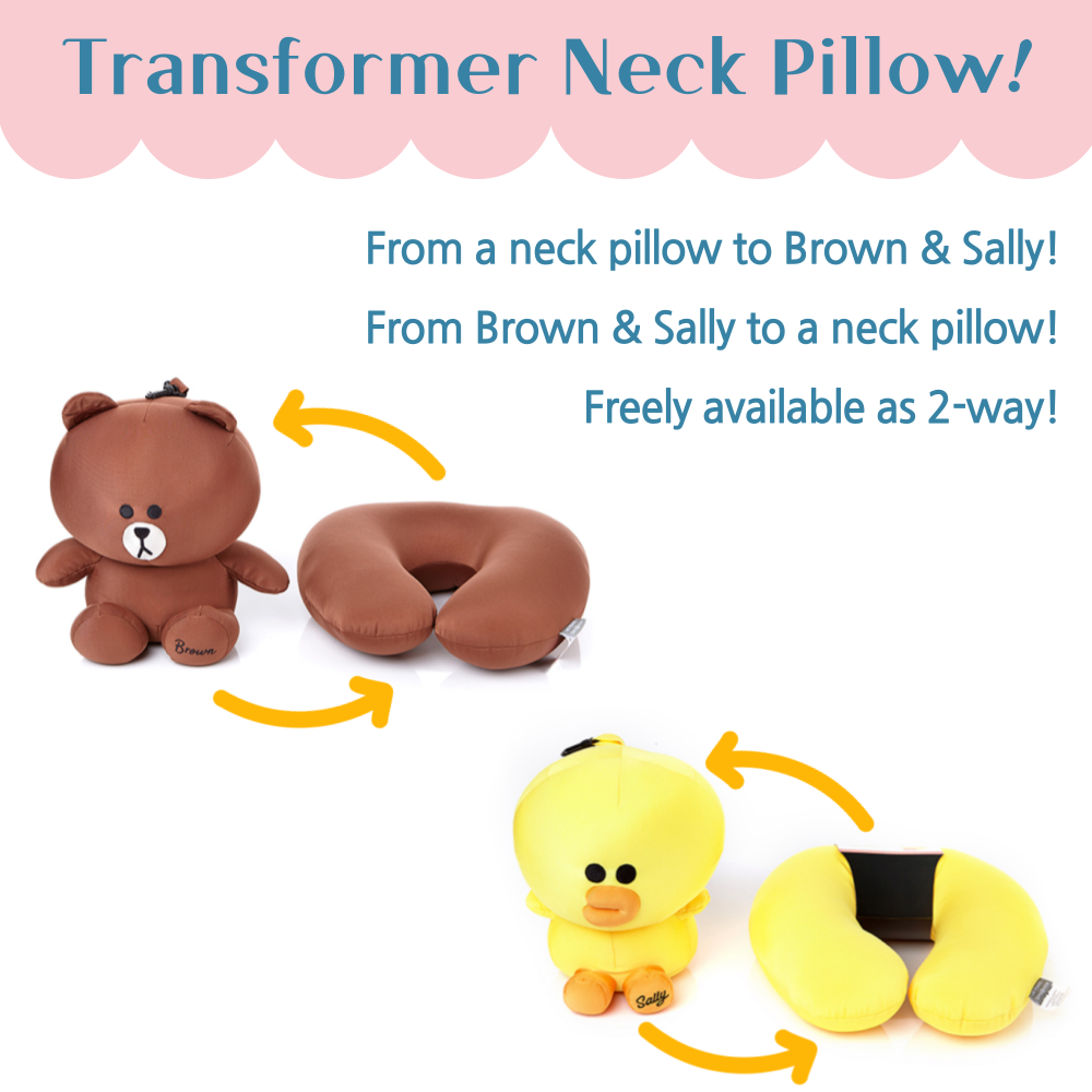 Use it as a neck pillow on an airplane, bus or train, then transform it into a Brown/Sally doll when you're lonely and bored!