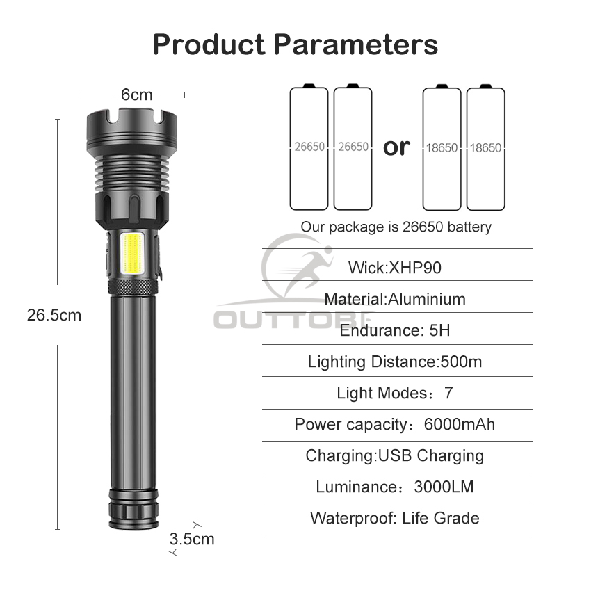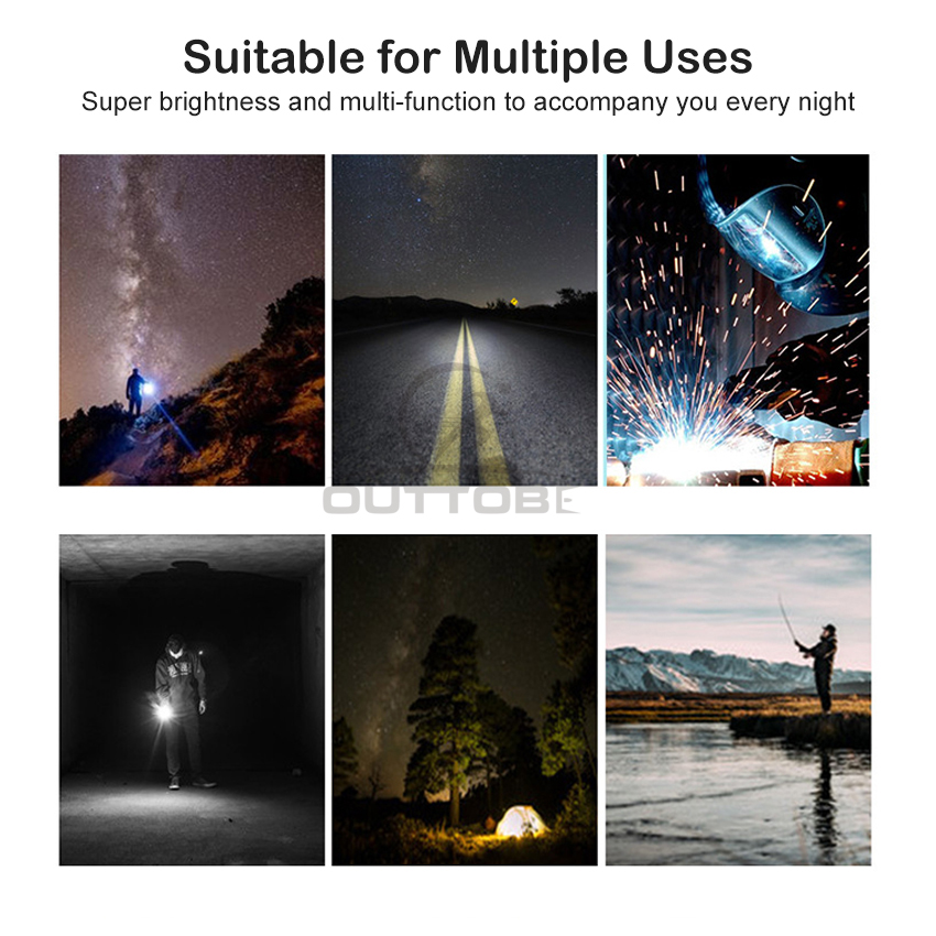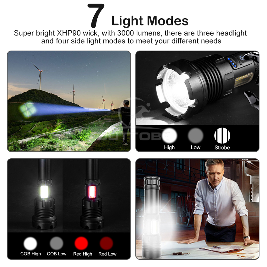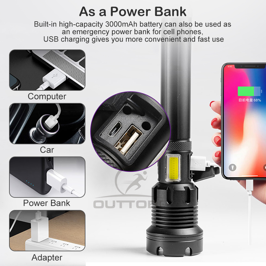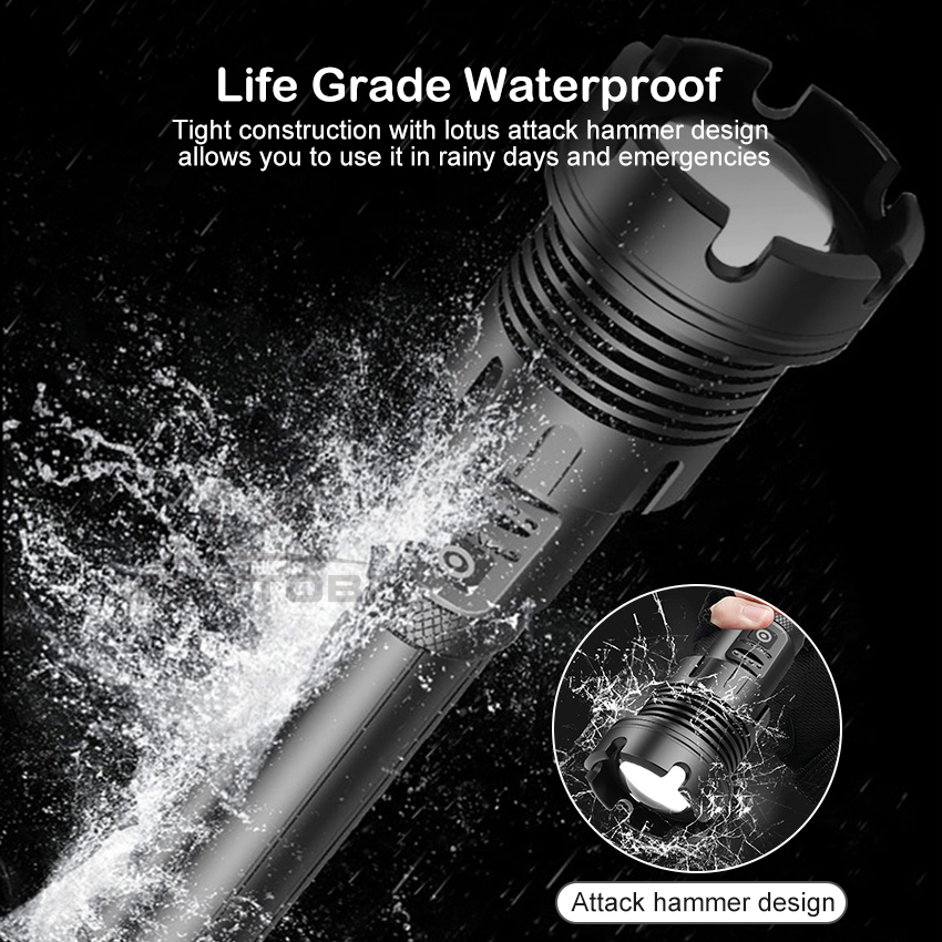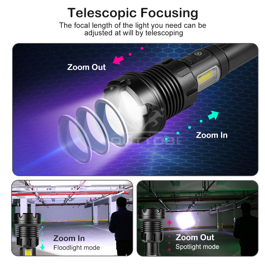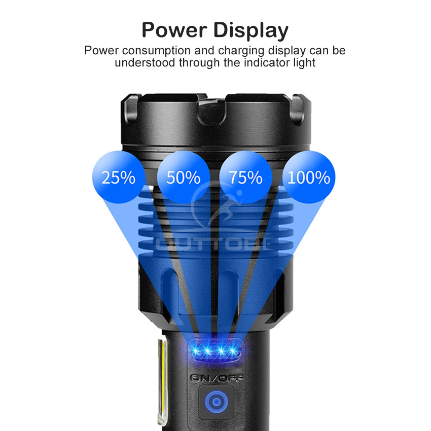 Outtobe XHP50/P70/P90 Power Display Flashlight Telescopic Focusing Flashlight Bright LED Flashlight Heat Dissipation Lights Waterproof Drop-proof Flashlight Outdoor Focusing Torchlight Portable Home