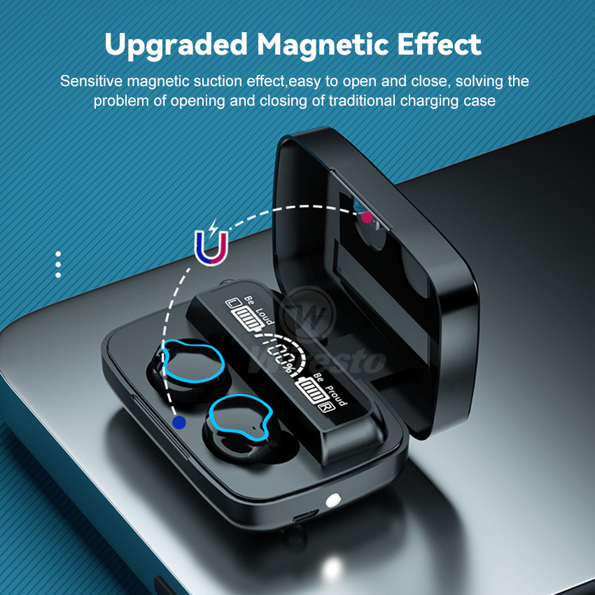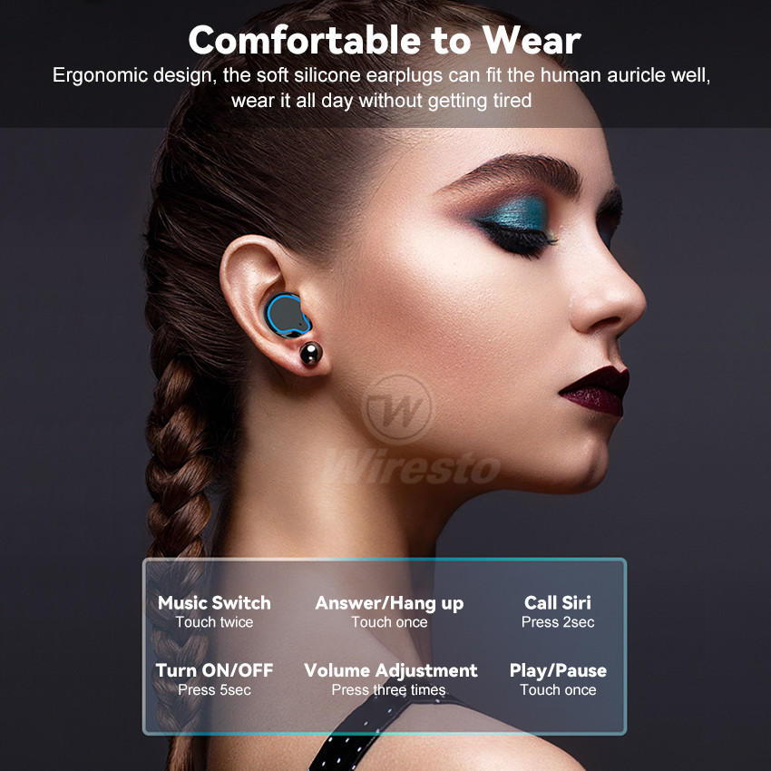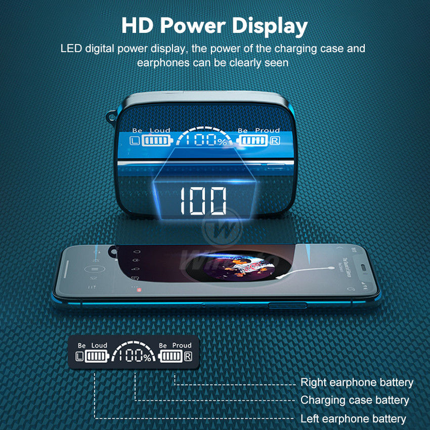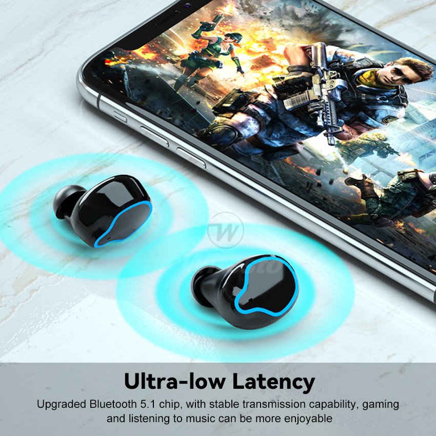Wiresto TWS Earphone Wireless Gaming Earbuds Bluetooth 5.1 In-Ear Headphones Waterproof Sports Headsets LED Display HIFI Stereo Phone Emergency Charging Hands Free Earphone With Large Capacity Chargin