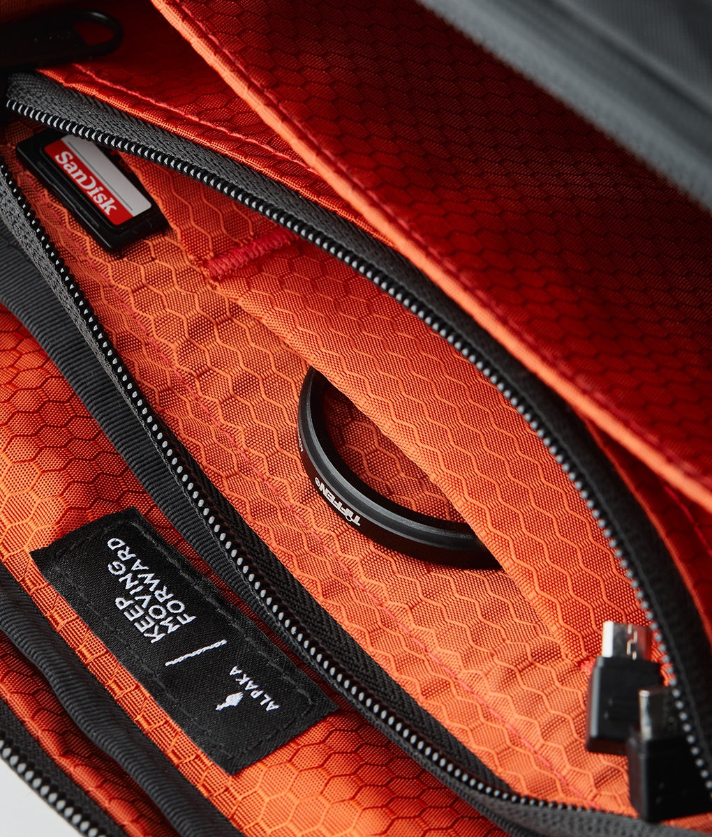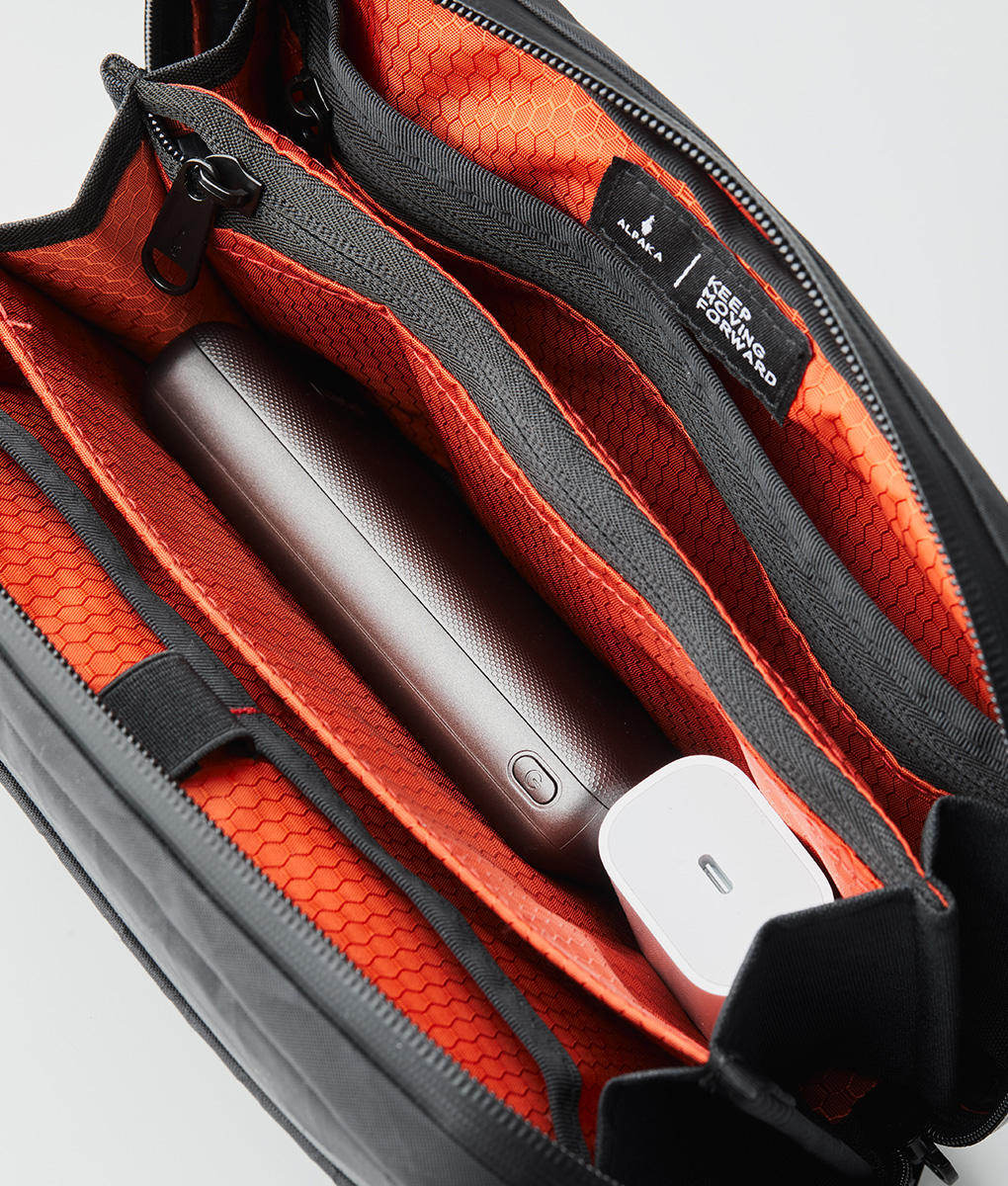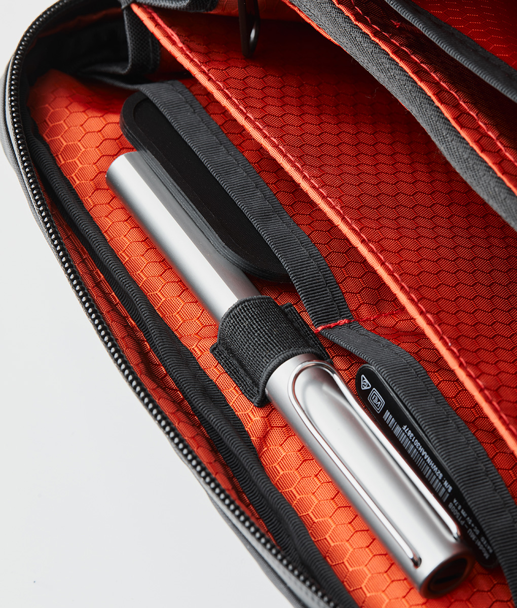 • Compartments are lined with Ripstop Nylon in Blood Orange