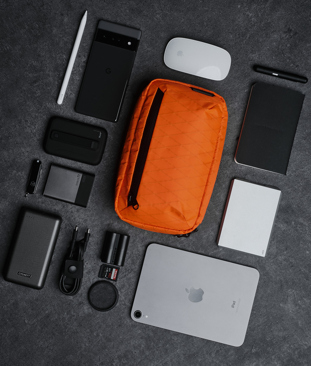 An intuitive tech case with smart organization for essential gear on the go or at your desk - making your space both aesthetically pleasing and functional.