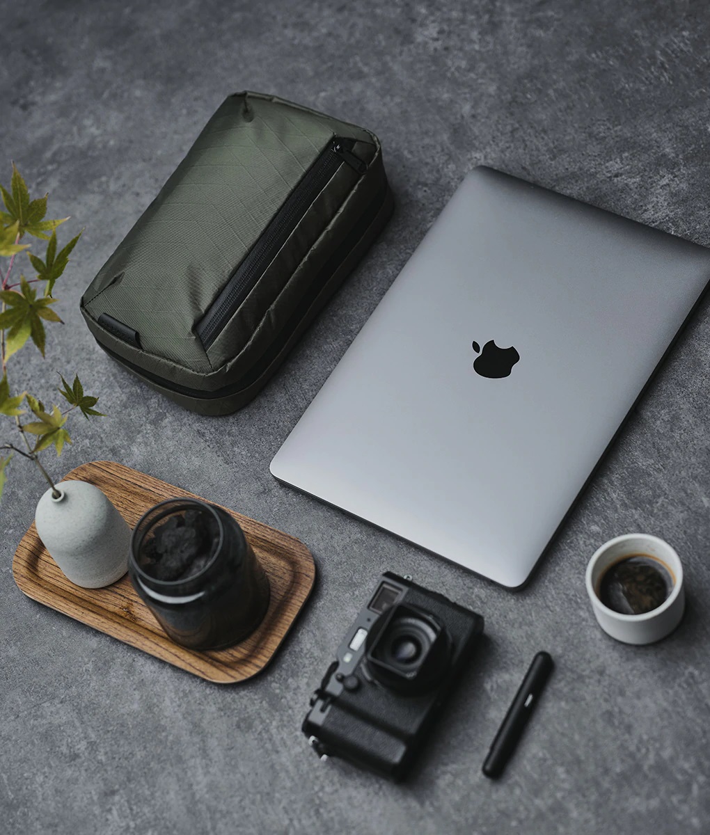 An intuitive tech case with smart organization for essential gear on the go or at your desk - making your space both aesthetically pleasing and functional.