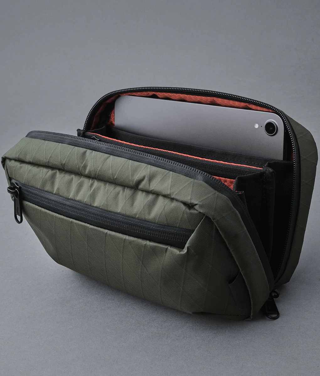 Designed to keep you clutter-free. Transforms into a sling to keep you hands-free on the go.