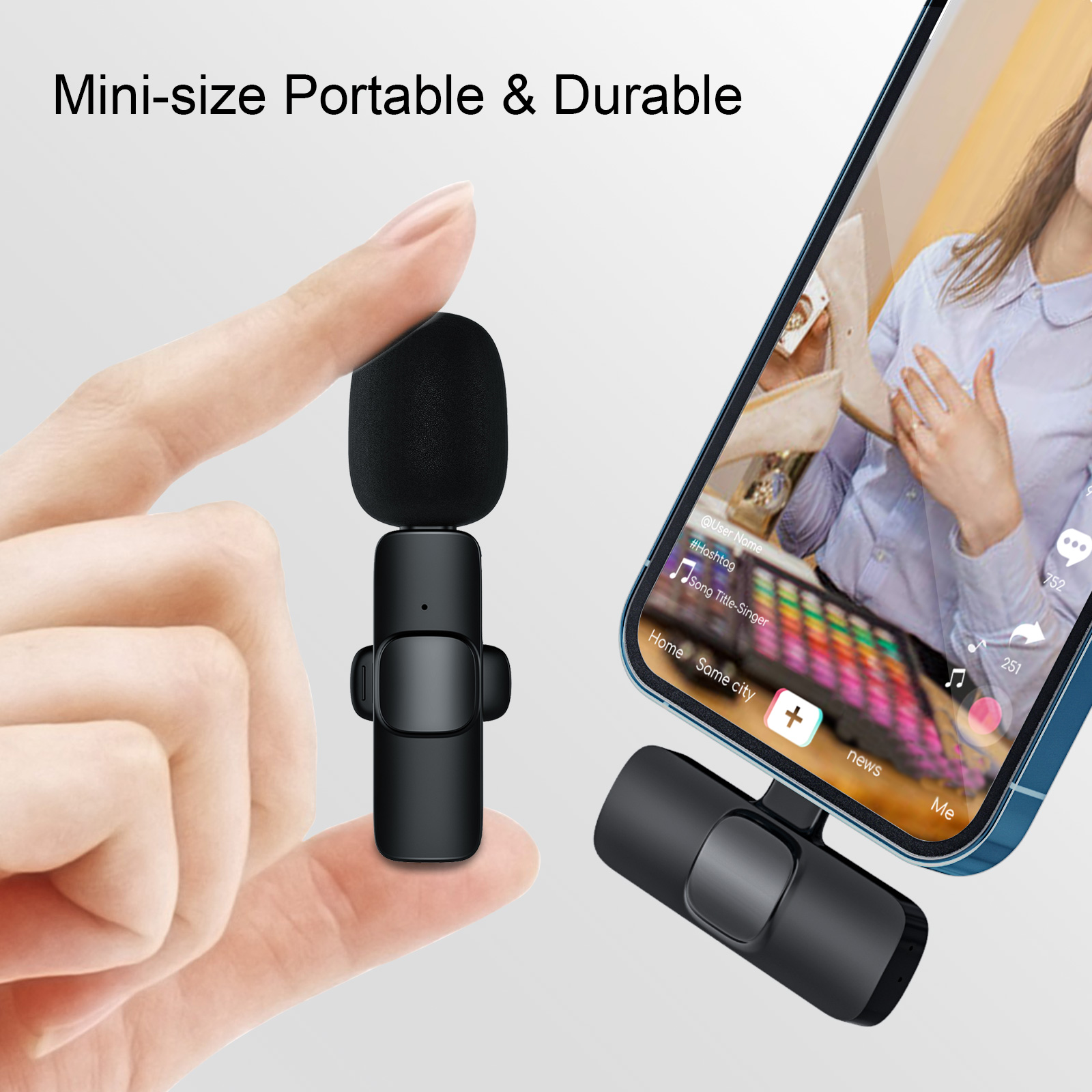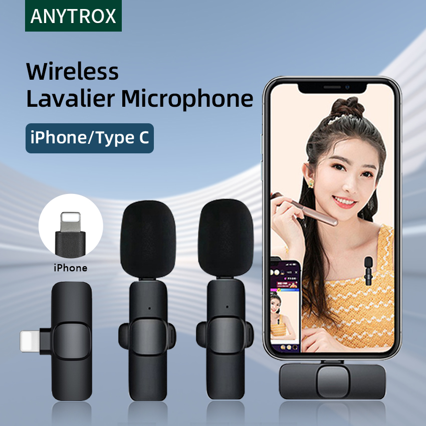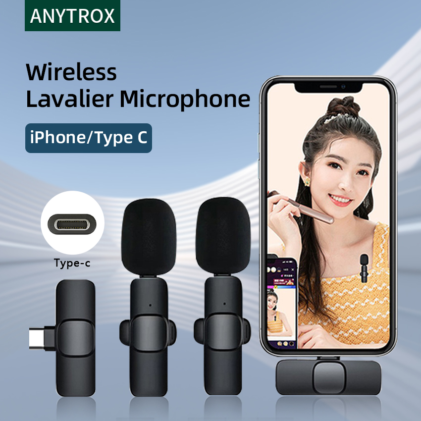 ANYTROX Wireless Microphone, Mini Lavalier Noise Cancelling Microphone for Live Streaming Video Recording Singing, Compatible with iPhone/iPad/Android Phone/Laptop/Tablet