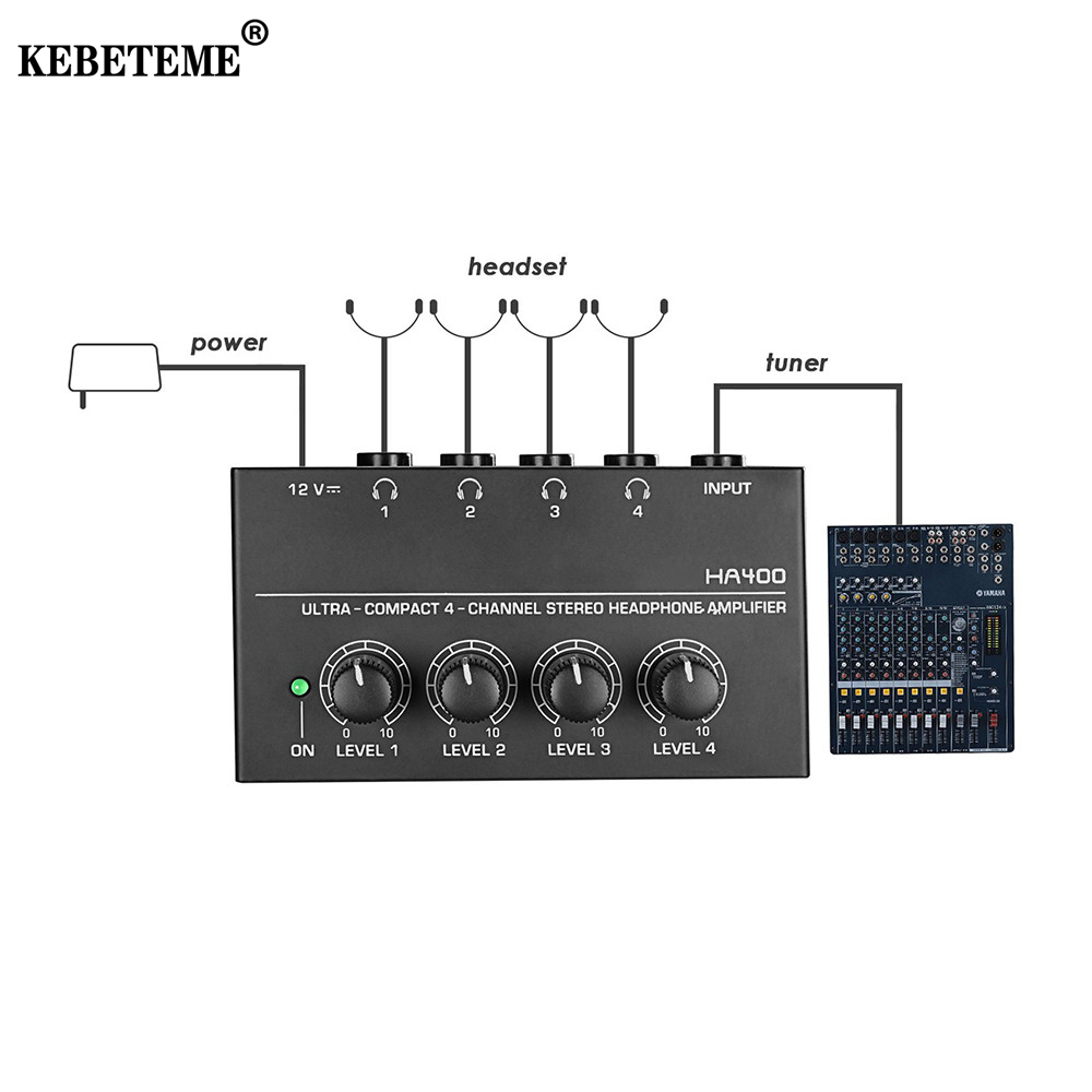 KEBETEME HA400 Audio Amplifier 4 Channels Mini o Stereo Headphone Amplifier With Power Adapter EU/US Plug Adapter