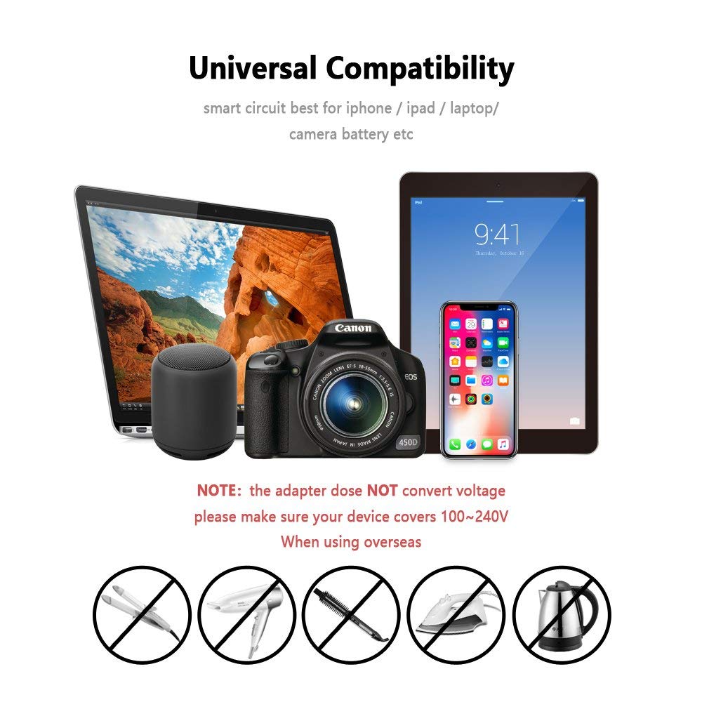• This universal travel plug with 4 USB can be used in more than 224 countries, such as whole Europe, USA, Australia, Japan, Canada, Sri Lanka, Maldives, Thailand, most countries in Asia. Not suitable for South Africa and India. The product is suitable for plugs of the following specifications: Type A / Type G / Type I / Type C / Type B / Type E.