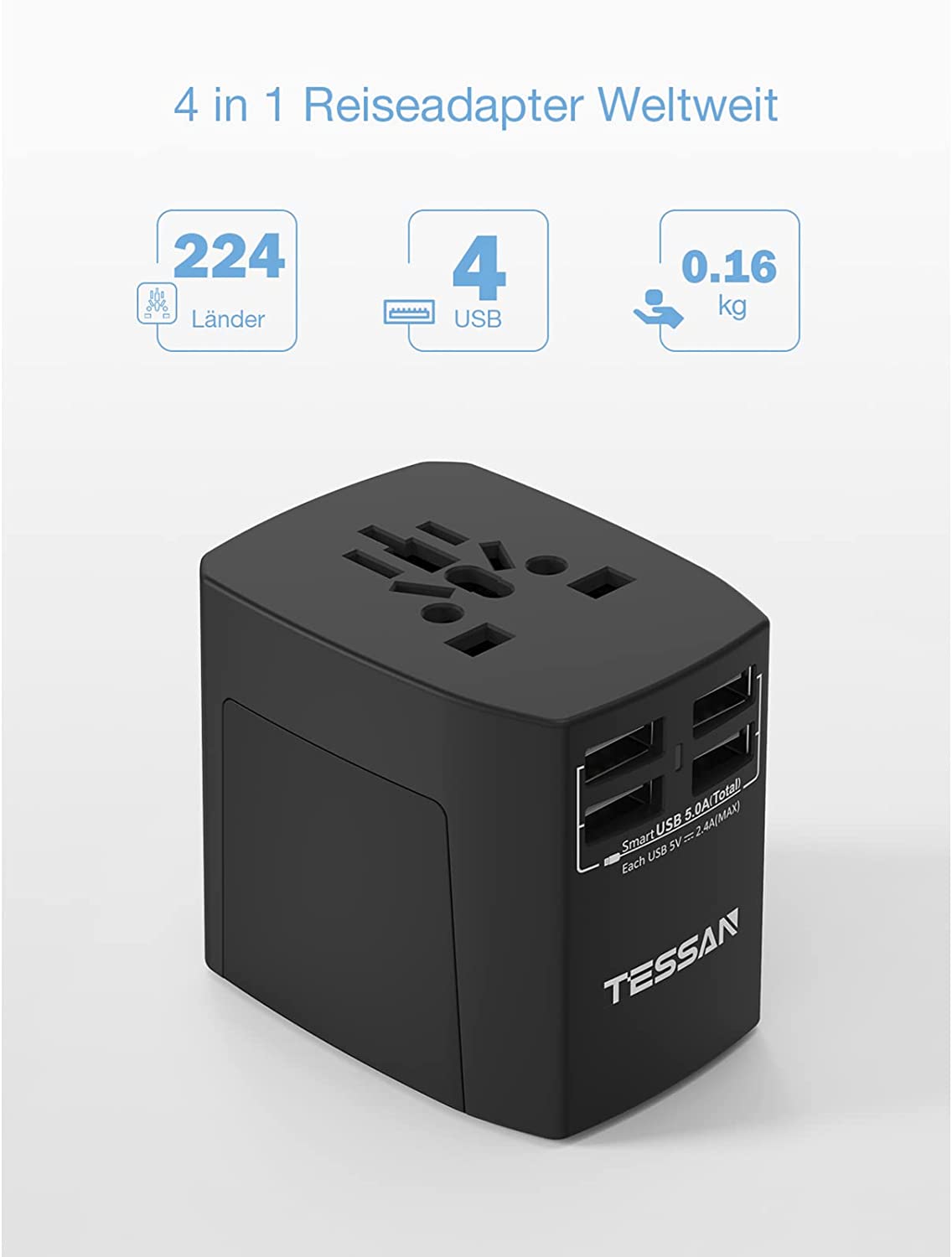 • Portable and compact: Tessan travel plug. Thanks to the integrated USB slots, you save many small USB chargers. For all travellers, it is a great companion.