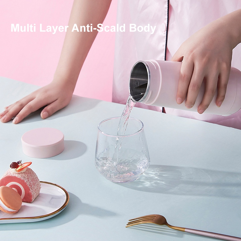 ☏℗ Portable Electric Kettle Travel 350ML Stainless Steel Water Boiler Keep Warm for Coffee Tea Electric Bottle Cup White Green 便携电热壶 电热杯