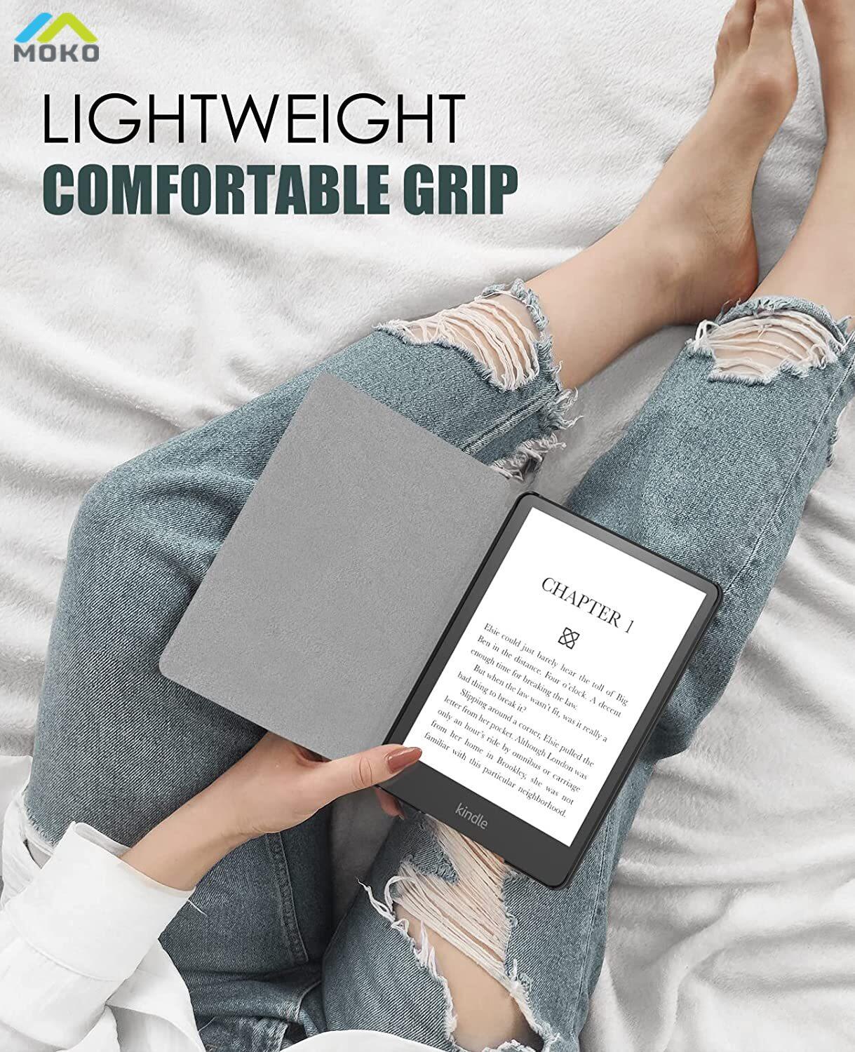 Product description: Slim lightweight hardback adds minimal bulk while protecting your Kindle Paperwhite 11. Automatically wakes or puts your device to sleep when the lid is opened and closed. The premium PU leather boosts a classy look. The no-scratch microfiber interior adds comfort and an additional layer of protection. Access to all controls and features. Device can be charged with case closed.
