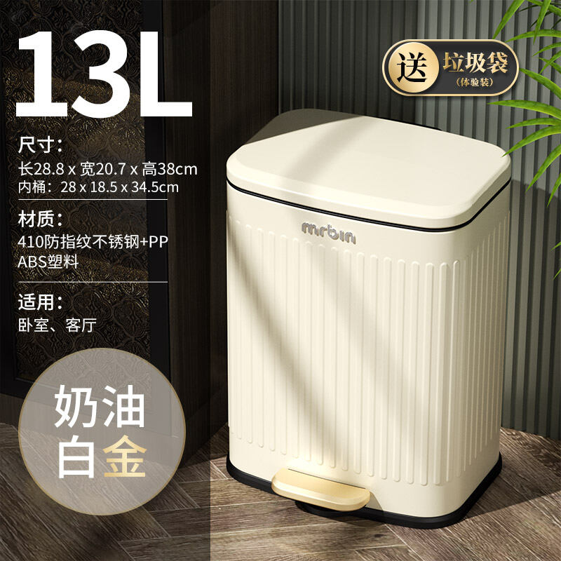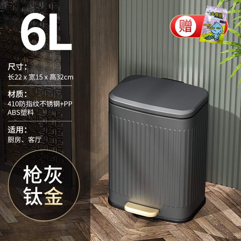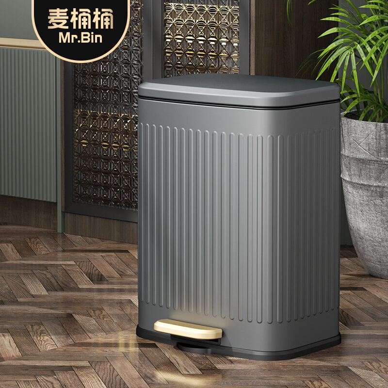 Wheat Barrel Light Luxury Vintage Kitchen Trash Can Household Pedal Large with Lid Living Room Stainless Steel Pedal Dedicated