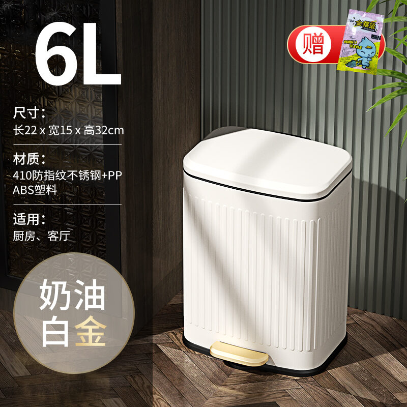 Stainless Steel Trash Can Household Pedal Square 20 Liters Bathroom Kitchen Large 25 Liters Commercial Office Storage