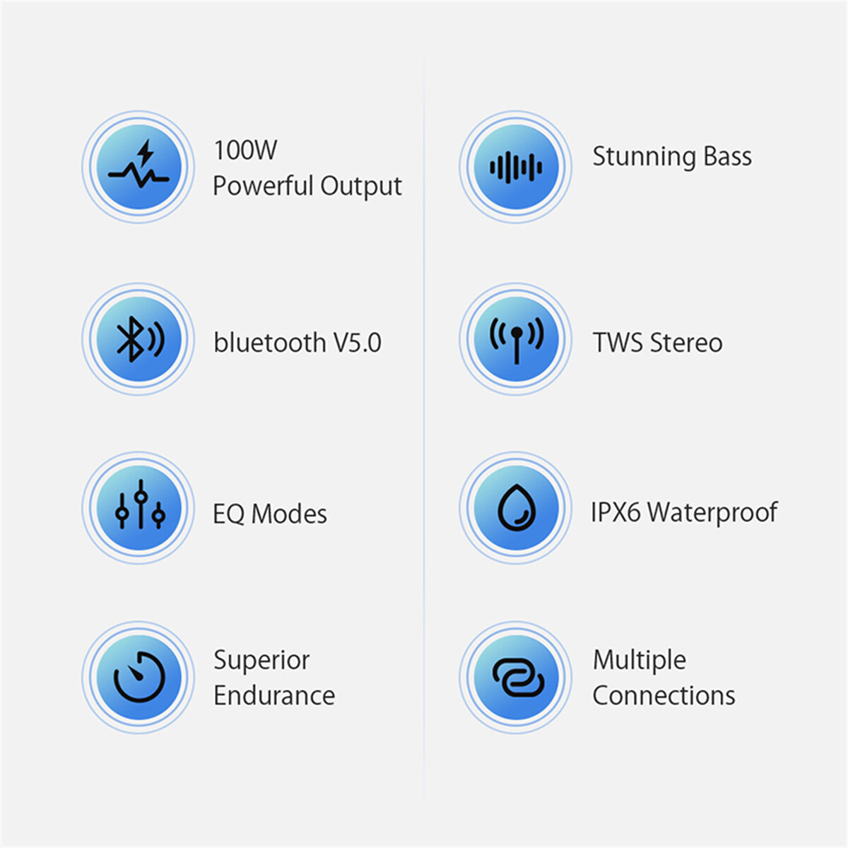 - 100W Powerful Output, Punchy Bass-- Indulge yourself in concert-like feast filled with deeply enhanced bass and sense rich details.