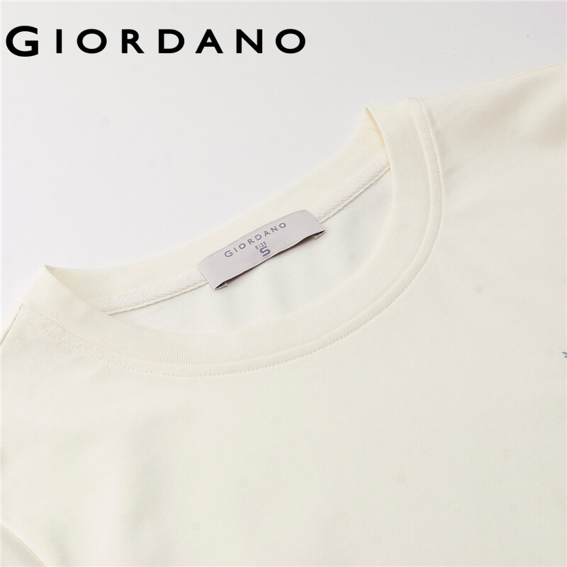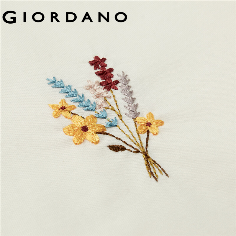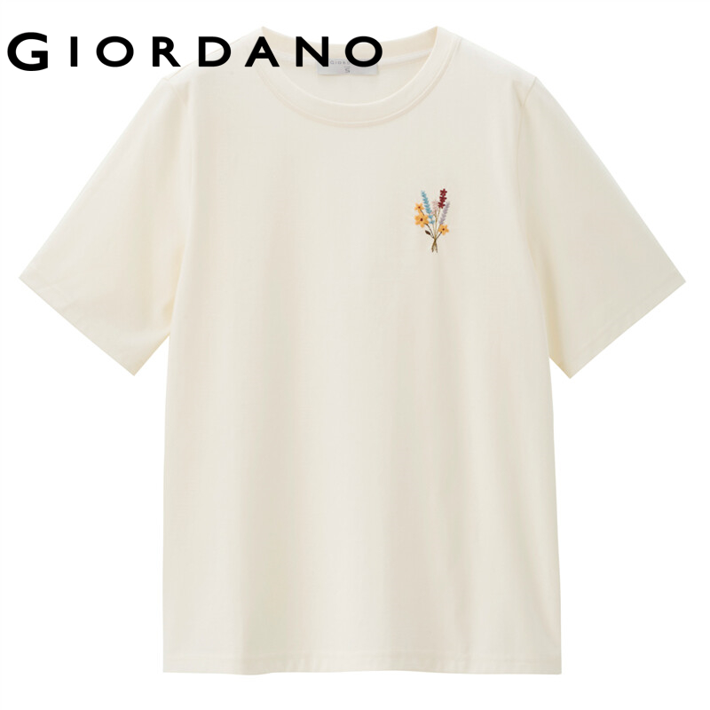 GIORDANO Women T-Shirts Crewneck Short Sleeve Summer Relaxed Tee Flowers Embroidery Simple Basic Casual Comfy T-Shirts 18322607