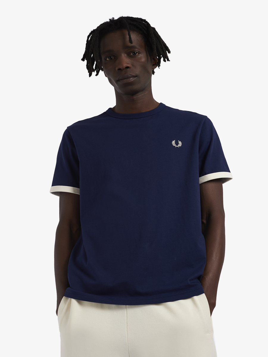 Cotton jersey / Regular fit / Rib neck and cuffOriginally worn as sports training gear, the ringer t-shirt was later adopted into the subcultural uniform.
