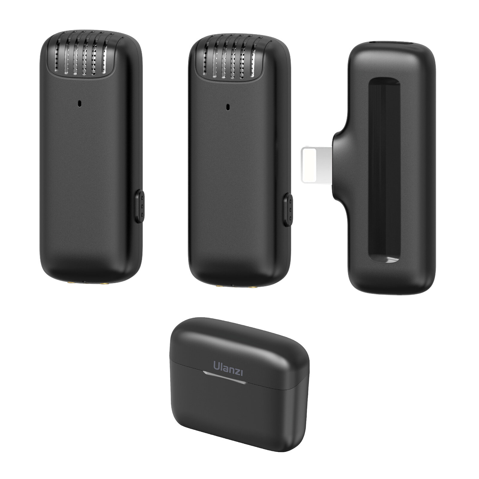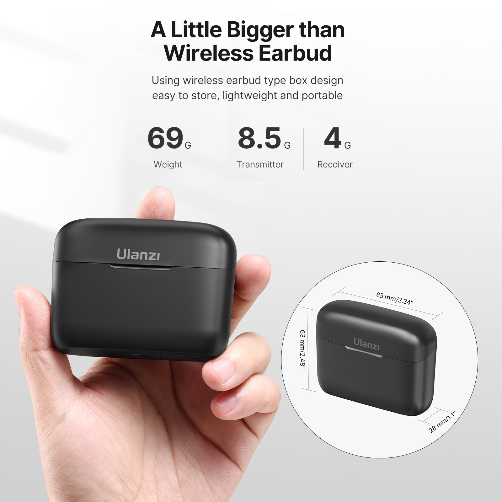 wireless charging case, just put the mic transmitters and receiver into it, than you can charge them anywhere anytime. The charging case supports 4-5 times charging after being fully charged. Mini and lightweight, easy to carry around.
