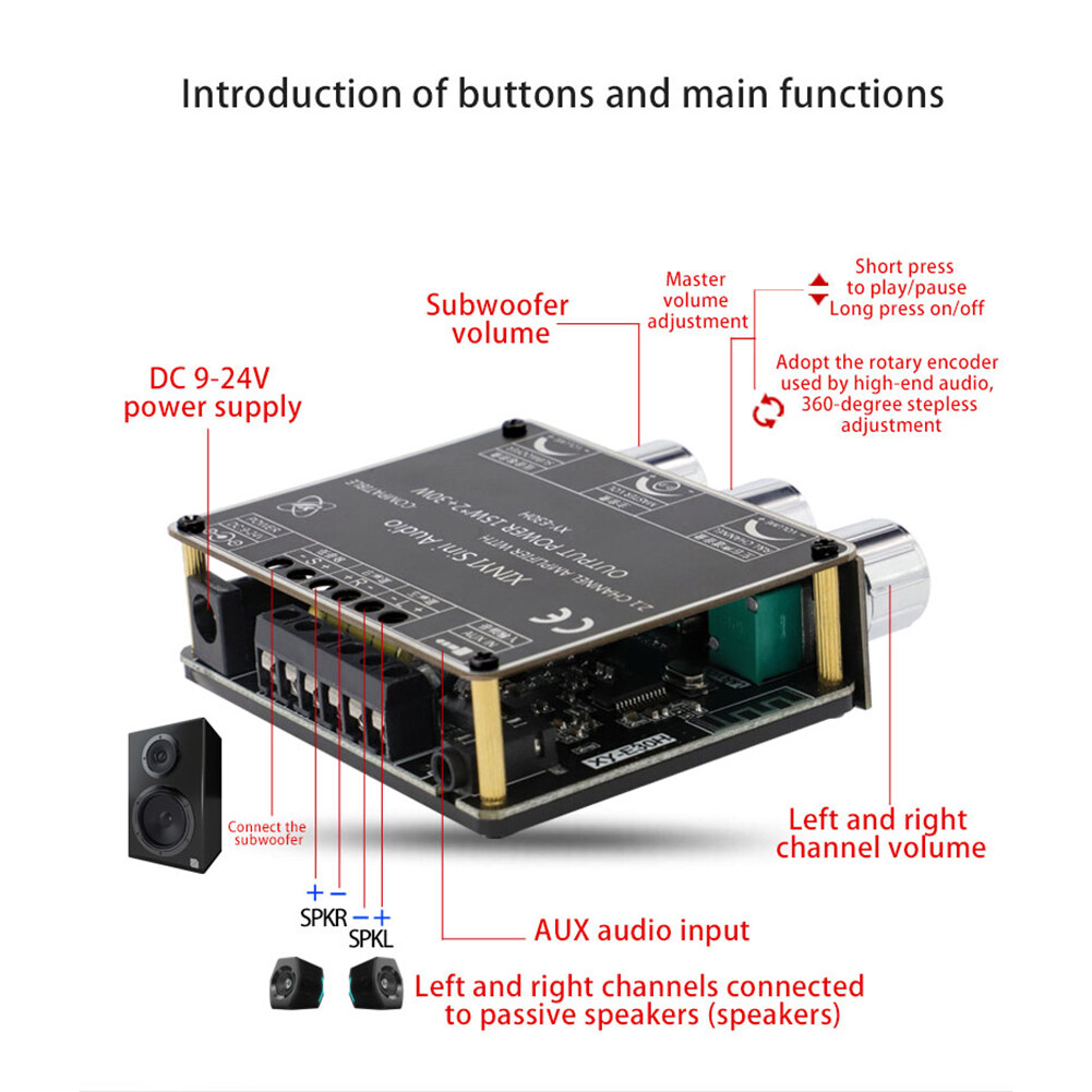 XY-E30H 2X15W Bluetooth-compatible AUX Power Amplifier Board Subwoofer 2.1 Channel Stereo for Home Theater Music Module Audio AMP