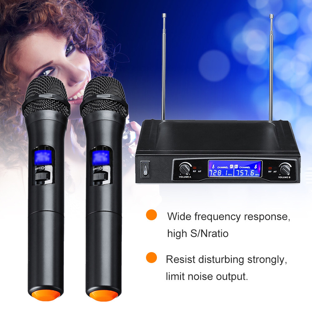This is a reliable dual digital microphone system set that is easy to setup and use. It features cordless design, which is convenient to carry and will not restrict your movement, so that you are free from the interference of cluttered lines. It is perfect for stage performance, karaoke, public address (presentations, classes, conferences).