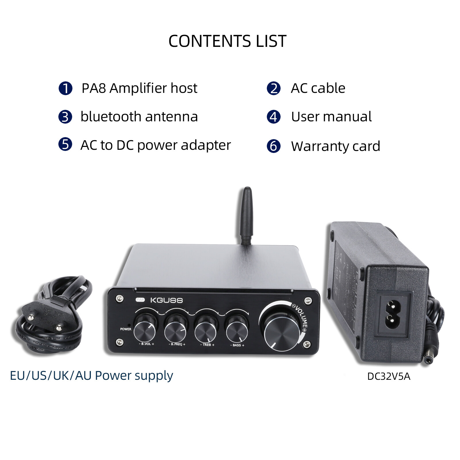 KGUSS PA8 High Power 2.1 Channel Digital Power Amplifier TPA3255 Fever HIFI Subwoofer Home Amplifier Bluetooth QCC3034 APT