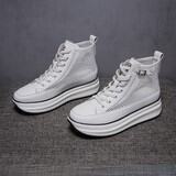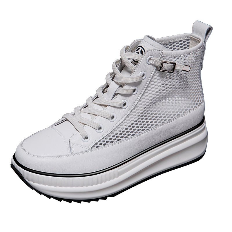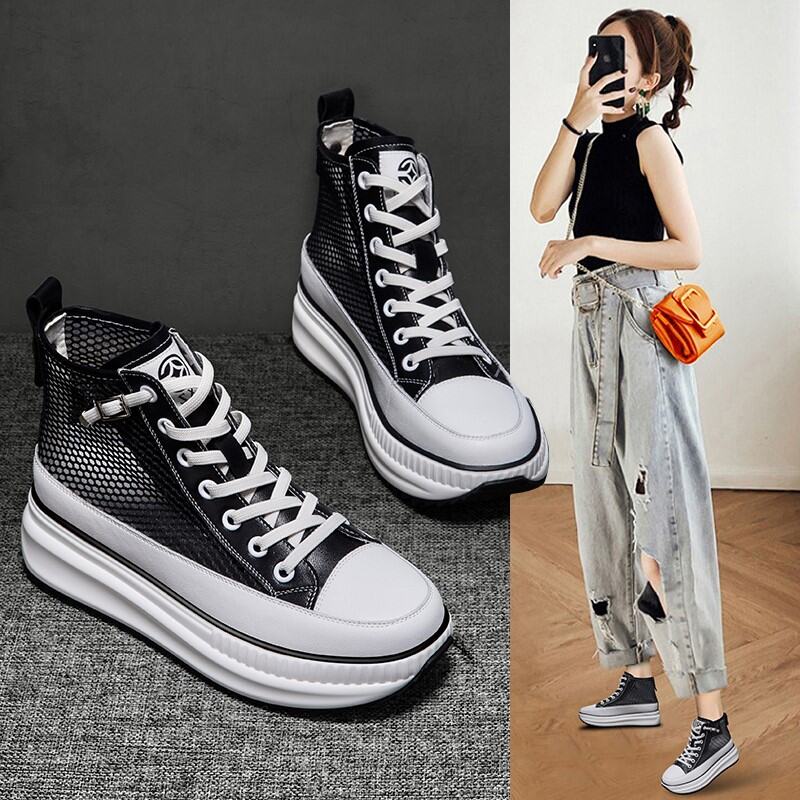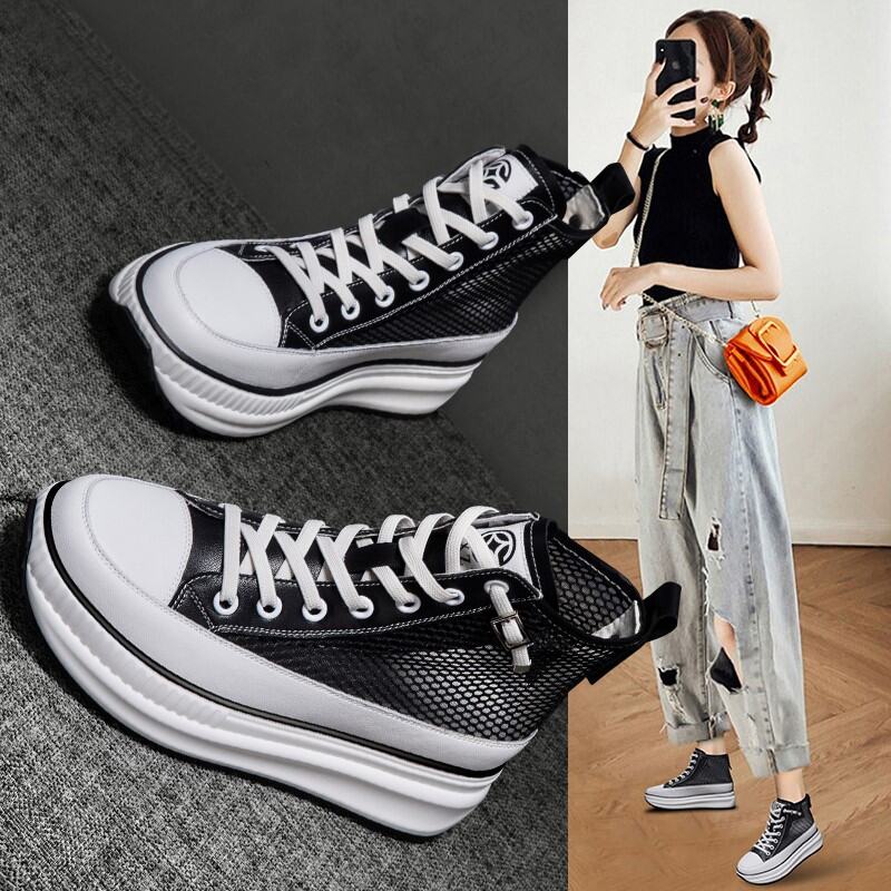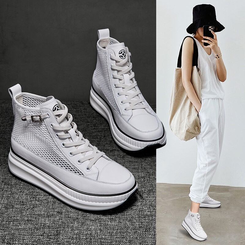 Same Style as Stars Genuine Leather Mesh Single-Layer Shoes 2022summer New Muffin Thick Bottom Elevator High-Top Casual Women's Shoes