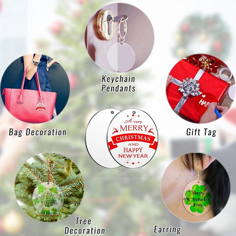 What you will get: package comes many pieces with 5 inches acrylic ornaments blanks with hole, which are larger and more eye-catching than the general 2 inches, and sufficient quantity can meet your DIY needs