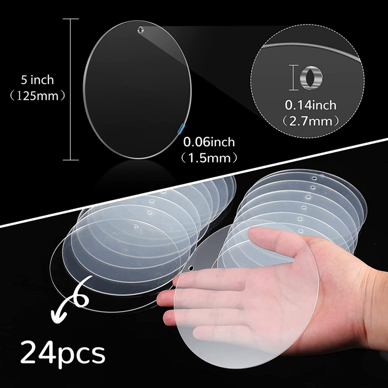 24Pcs 5 Inch Acrylic Keychain Blanks Acrylic Circles Clear Disc Ornaments Blanks with Hole Transparent Circle Discs