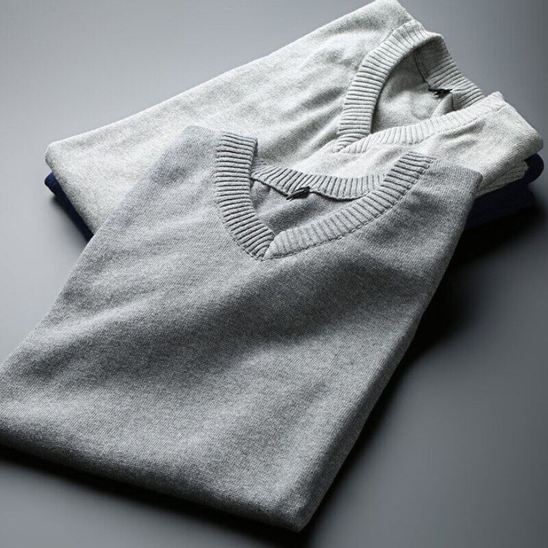 LUX ANGNER Autumn Winter Men's Pure Cotton Sweater Man Long Sleeve Solid Slim Fit Pullovers Sweaters For Men Casual Warm Jersey Knitted Pullover Korean Style Brand Clothes