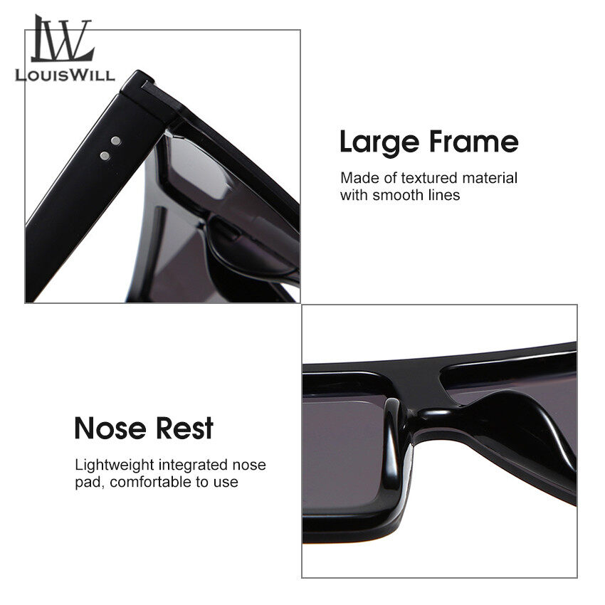LouisWill Sunglasses Fashion Luxury Brand Square Sunglasses Women Vintage Oversize Sun Glasses Female Big Frame Shades Oversized Square Sunglasses Lady Uv400 Flat Top Shield Sunglasses