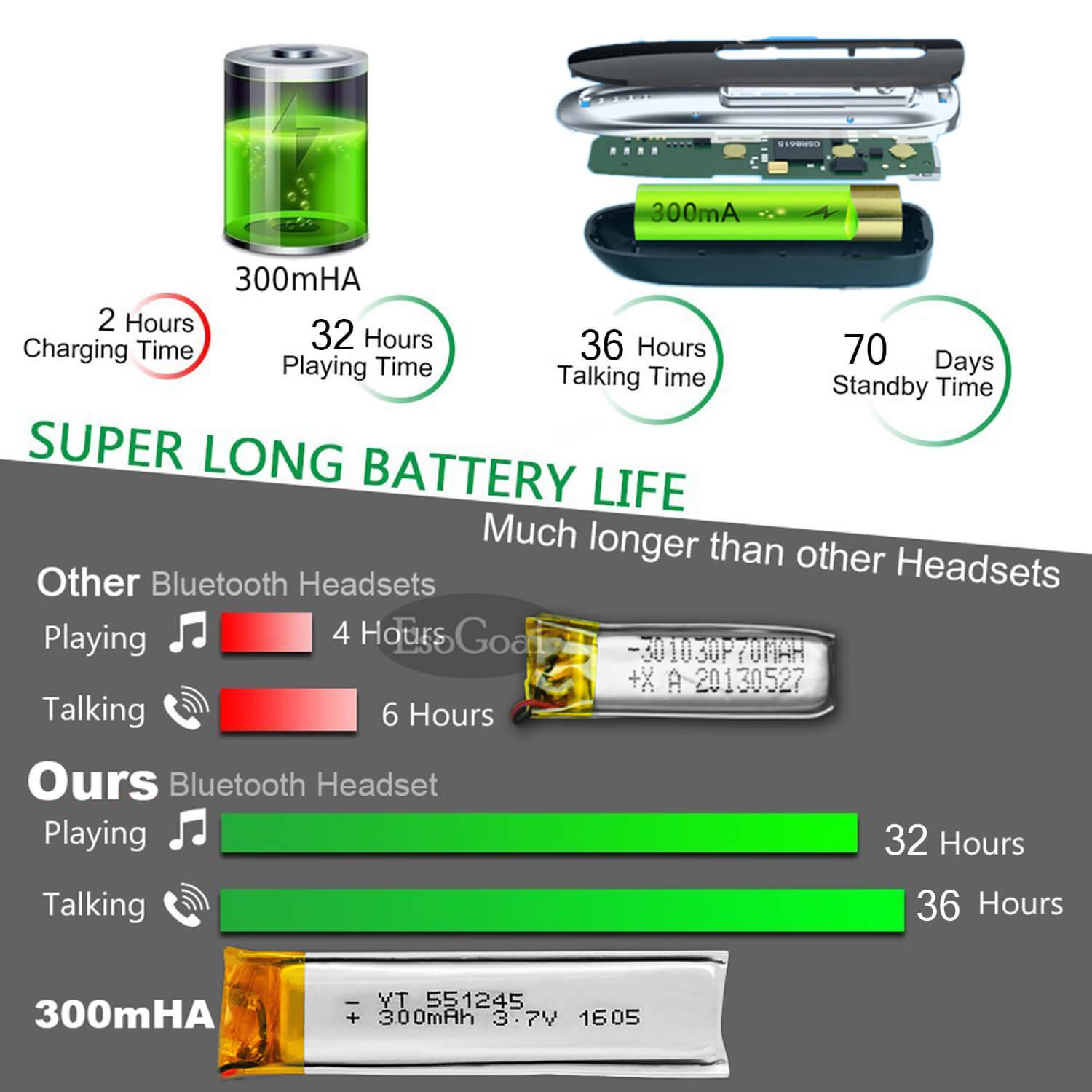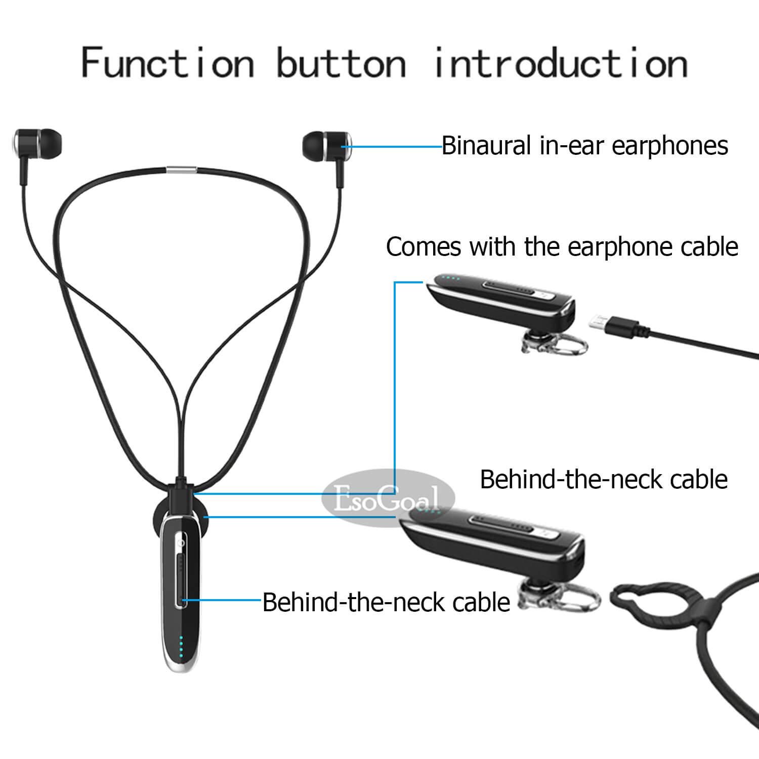 EsoGoal Wireless Earbuds Business Bluetooth Headphone Earpiece Headsets with Mic, Extra Long Standby 36 Hours Talking Time Stereo Hands-Free In Ear Headphone with External Wired Earphone for Smart P