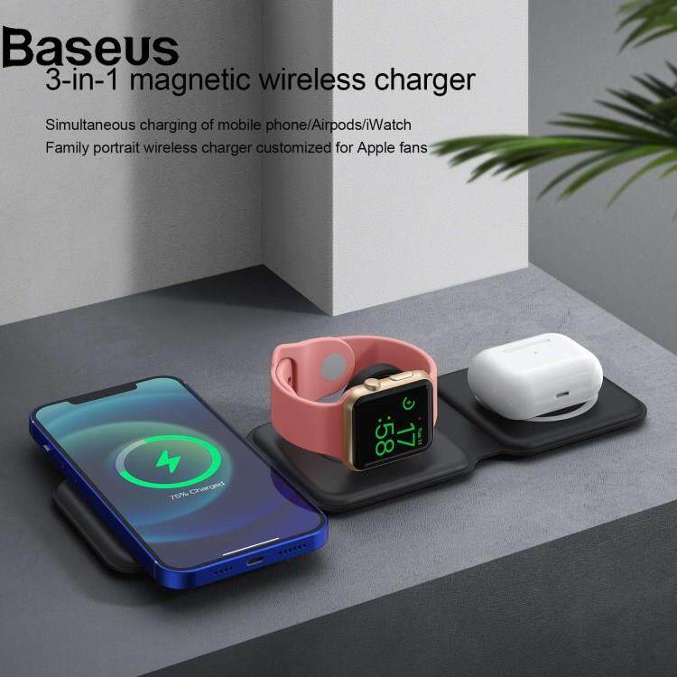 Baseus WC-07W 3 in 1 Magnetic Wireless Charger Foldable Charging Dock with Indicator Light