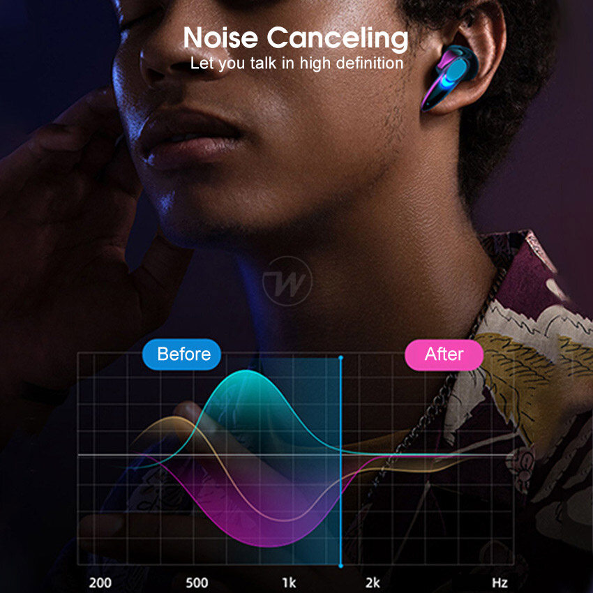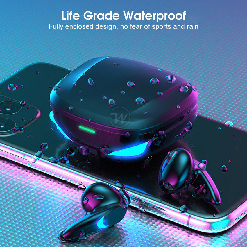 Wiresto TWS Earphone Bluetooth 5.2 Half In-Ear Headphones Noise Canceling Earphones Sports Earbuds Waterproof Headsets HIFI Stereo Earbuds Gaming Headset with Breathing Light Free Storage Bag