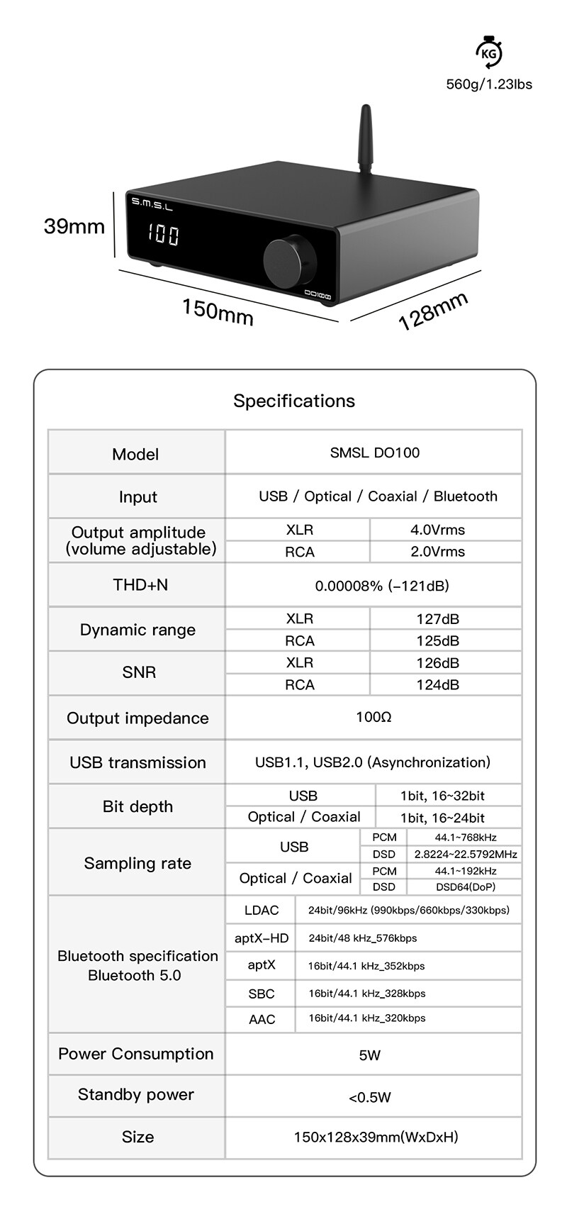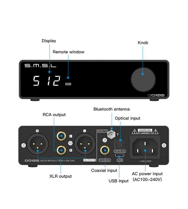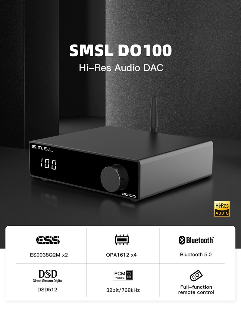 SMSL SMSL DO100 HiRes Audio DAC ES9038Q2Mx2 Bluetooth 5.0 DSD512 32Bit 768KHZ OPA1612 Balanced XLR output decoder with remote control HiRes Audio DAC ES9038Q2Mx2 Bluetooth 5.0 DSD512 32Bit 768KHZ OPA1