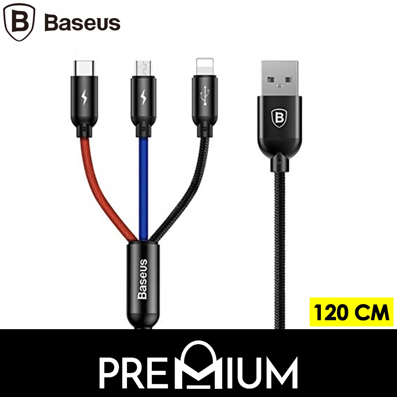 BASEUS Three Primary Colors 30CM 1.2M Multi Head End Ends 3 in 1 Cable Compatible with Phone USB iP 13 12 5.4 6.7 Mini NEW SE 2020 2nd Gen 11 Pro Max Xs Xr 8 7 6 6S Plus iPd Micro USB Samsung Xiaomi