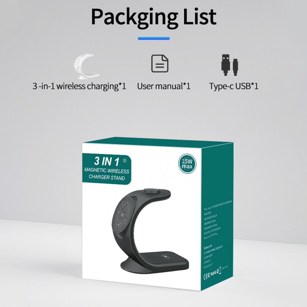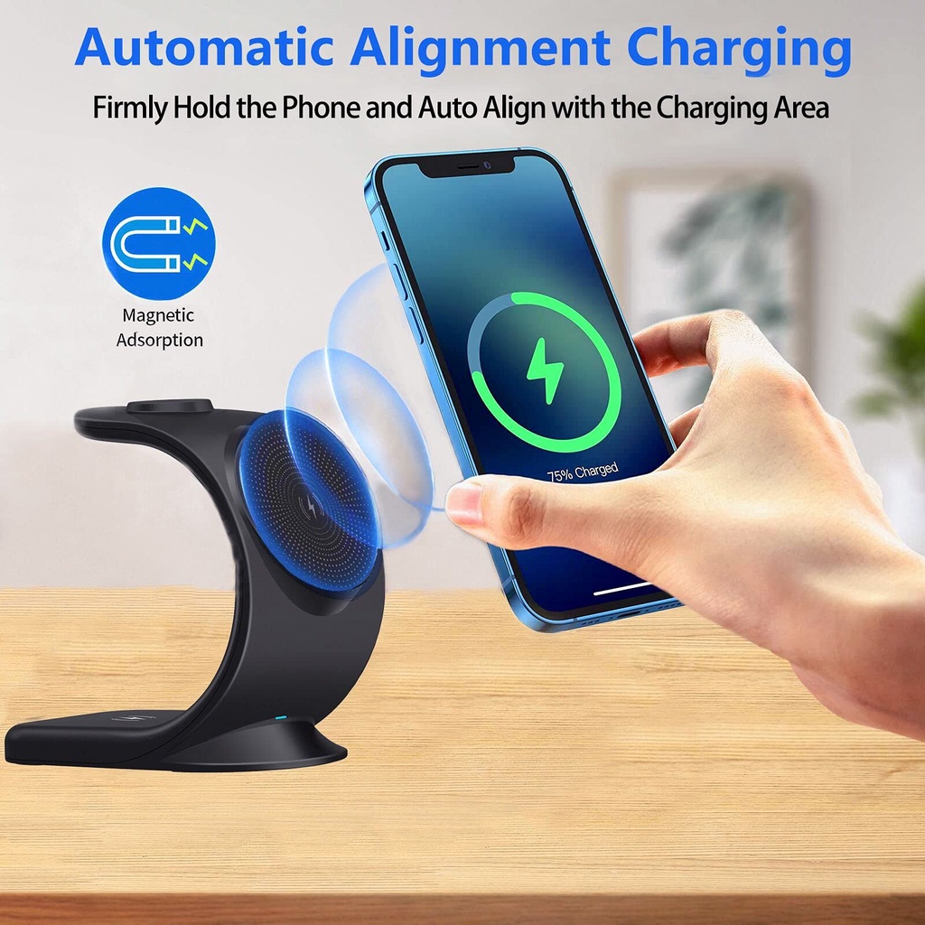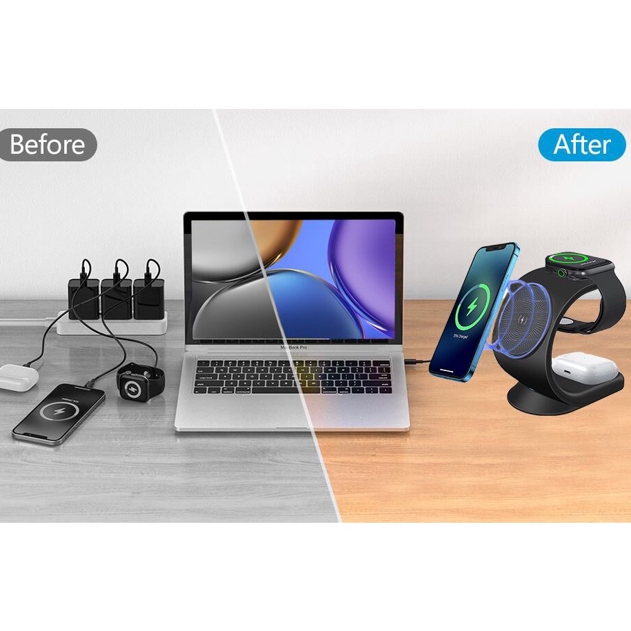 • ?【3 in 1 Magnetic Wireless Charging Station】A charging station for multiple devices such as iPhone and Airpods and iWatch.