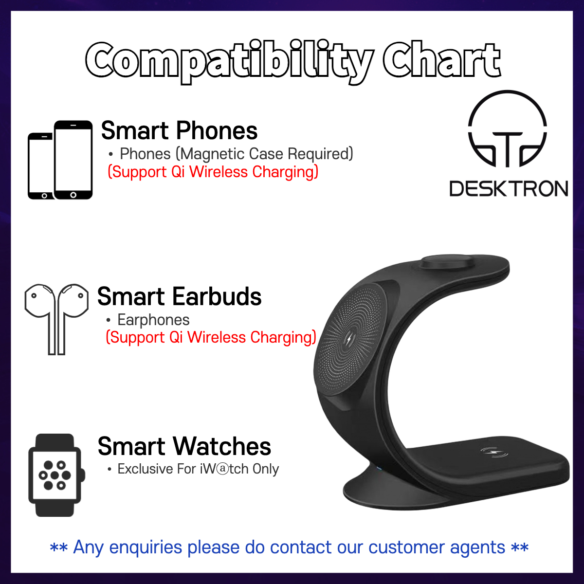 • ?【With Auto-Alignment Charging Technology】DESKTRON Wireless Charger Station with Charging, super easy to charge your devices. A dedicated iPhone Pro or iPhone charging spot ensures charging begins on contact, every time.