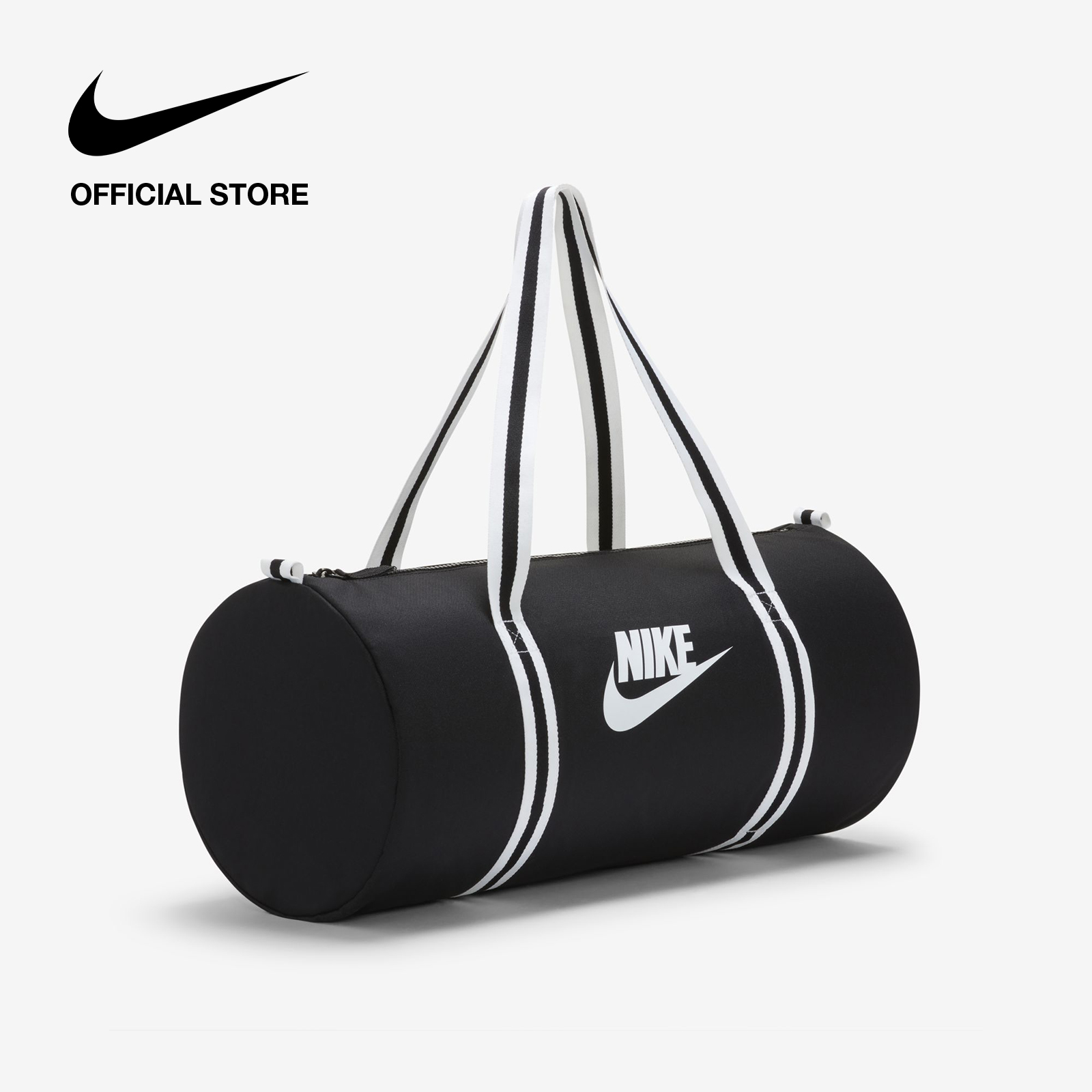 A tried-and-true travel companion, the Nike Heritage Duffel Bag offers extra storage when you need it. Its minimalist design is accented with striped woven details for a throwback look. An accessories pocket on the front panel provides secure small-item storage. This product is made with at least 65% recycled polyester.