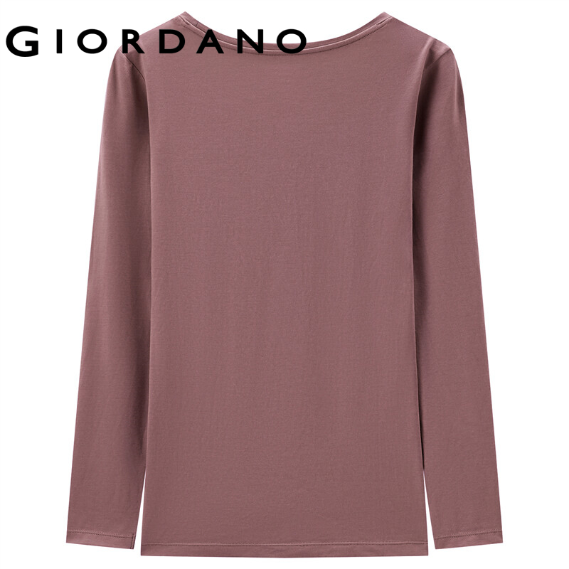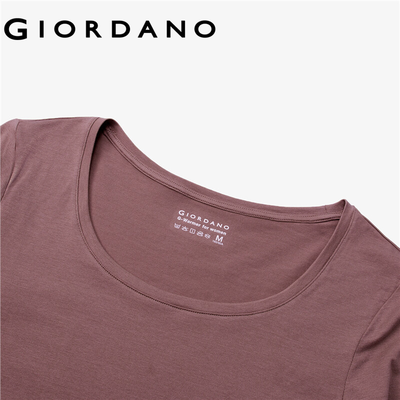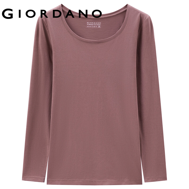 GIORDANO Women T-Shirts G-Warmer Stretchy Lightweight Thermal Tee Crewneck Solid Color Simple Warm Casual Baselayer Tee 05512601
