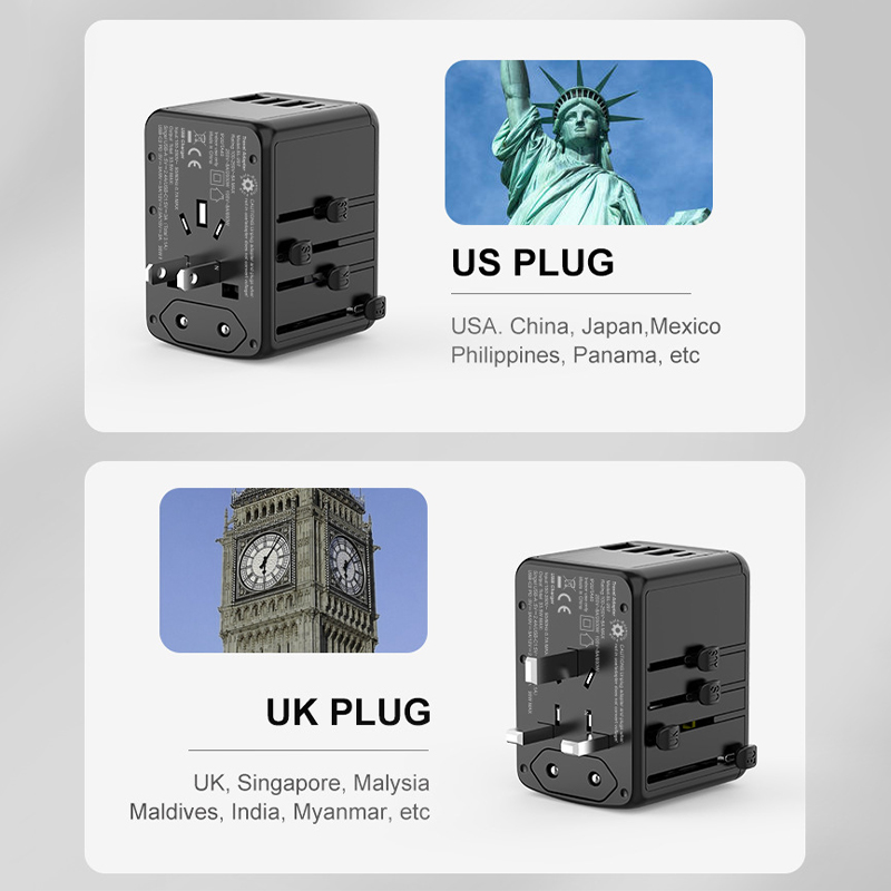 Universal Travel Plug Adapter Charger PD35W Fast Charging 3 USB PORT + 2 TYPE C PORT - US/UK/AU/EU Port Wall Charger