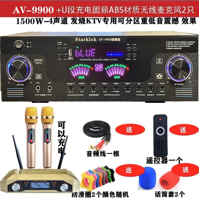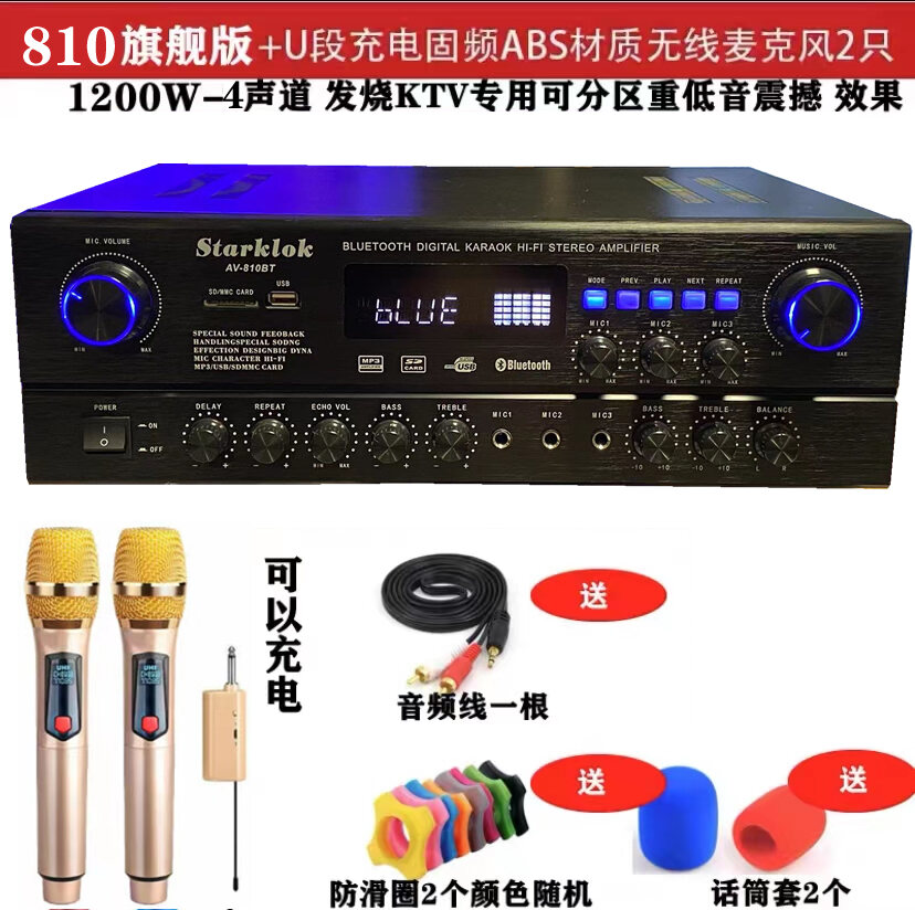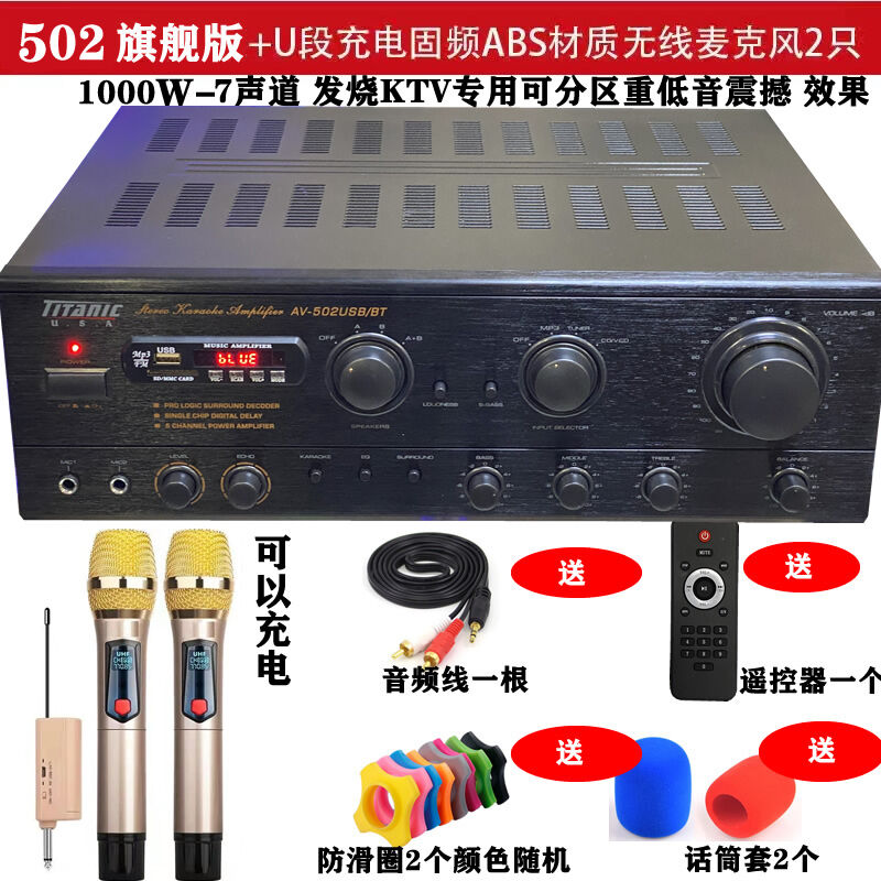 7 Channel Power Amplifier Home KTV High Power Professional Stage Audio Bluetooth Karaoke Computer SD Reverb Amplifier
