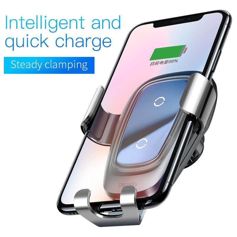 Baseus Wireless Charger Car Holder for iPhone 14 13 Pro Max 12 11 X 8 Samsung S9 Plus Mobile Phone Holder Stand Air Vent Mount Car Phone Holder Suit For(4-6.5 inch Phone)