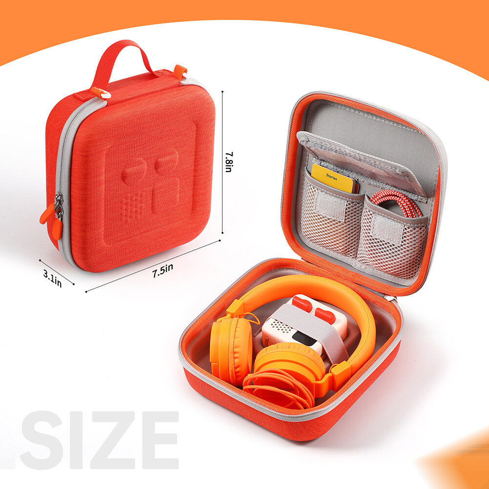 Feature: 1. Special Design: Gray and orange color contrast design, perfect for carrying and storing your children's speakers, suitable for Yoto Mini children's radio player card and accessories (audiobook card and USB charging cable), and can also put down headphones.