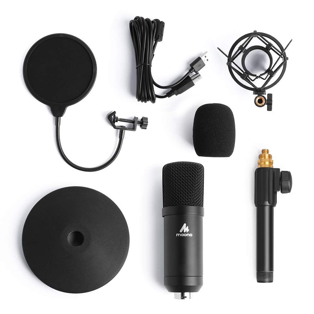 PACKING LIST: Maono USB mic + Shock Mount + Table stand+Pop filter+ Wind foam+USB-B to USB-A Cable