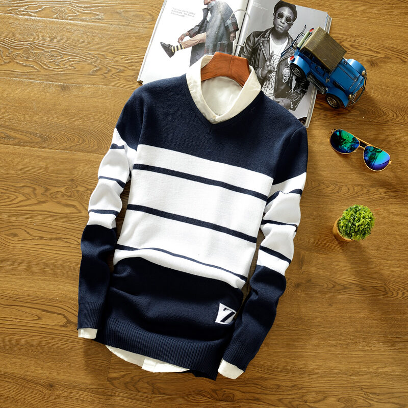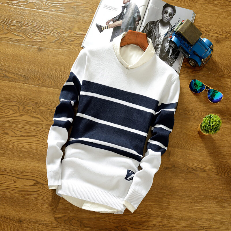 2021 Autumn New Korean-Style Men's Slim-Fit round Neck Sweater Autumn and Winter All-Match Pullover Sweater Cashmere Clothes