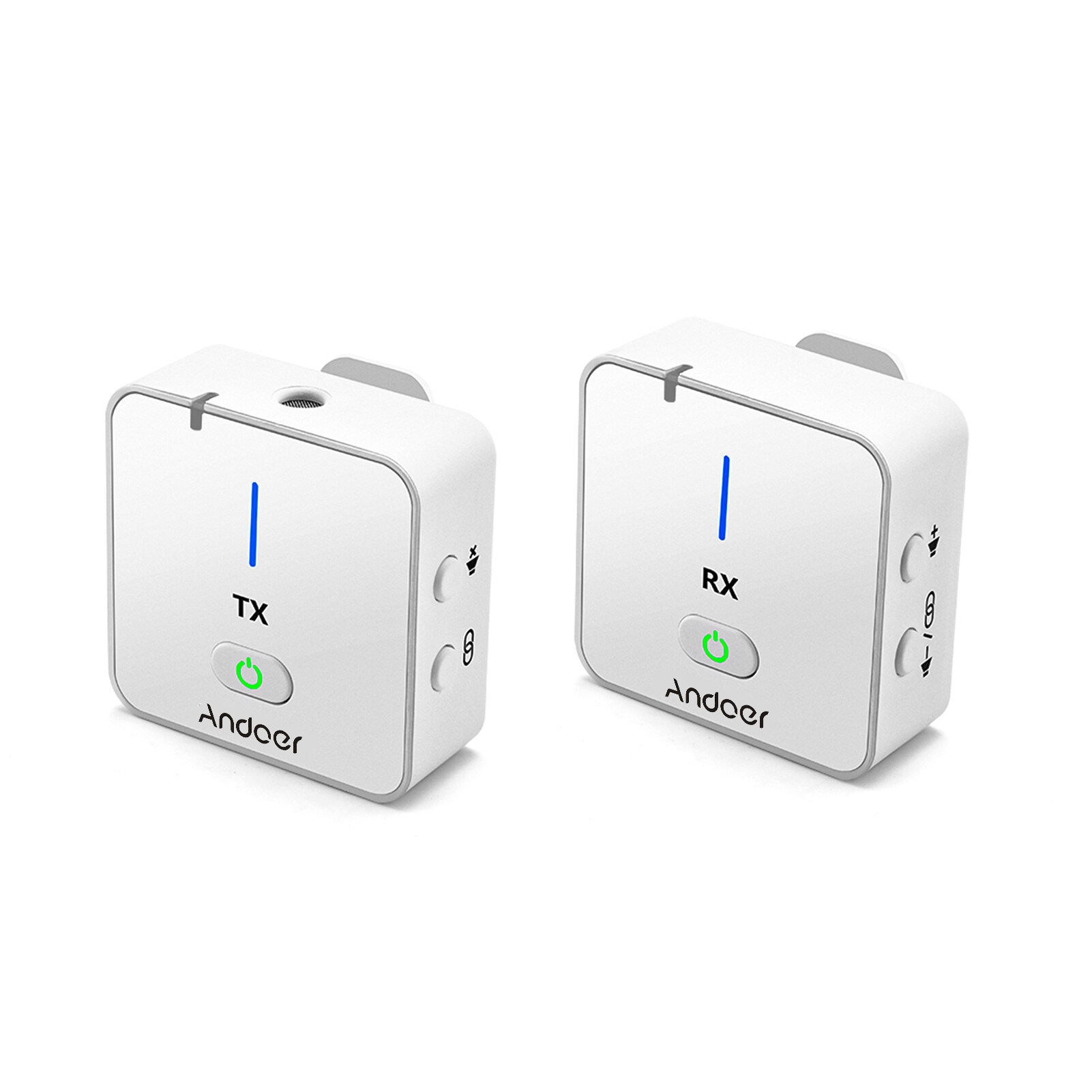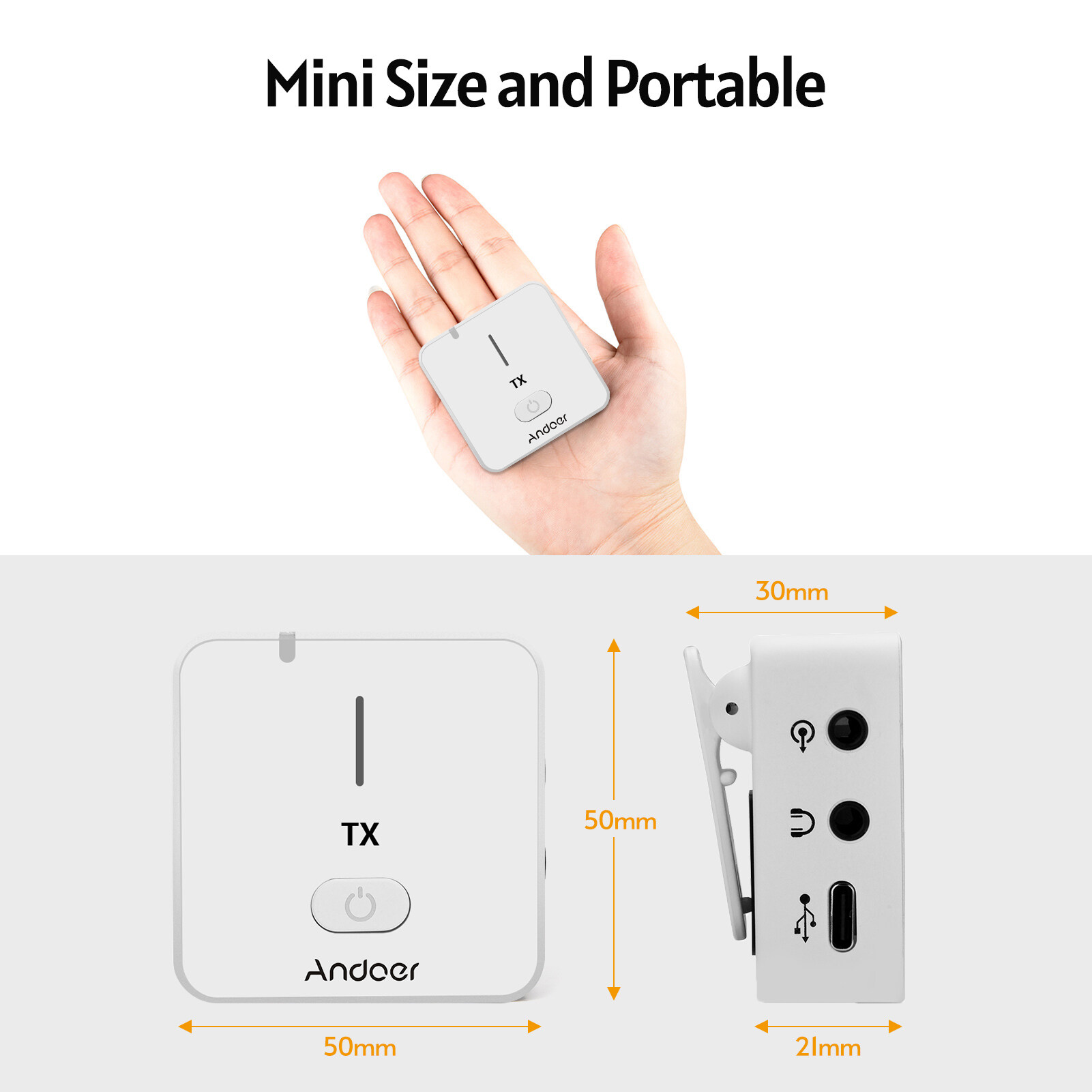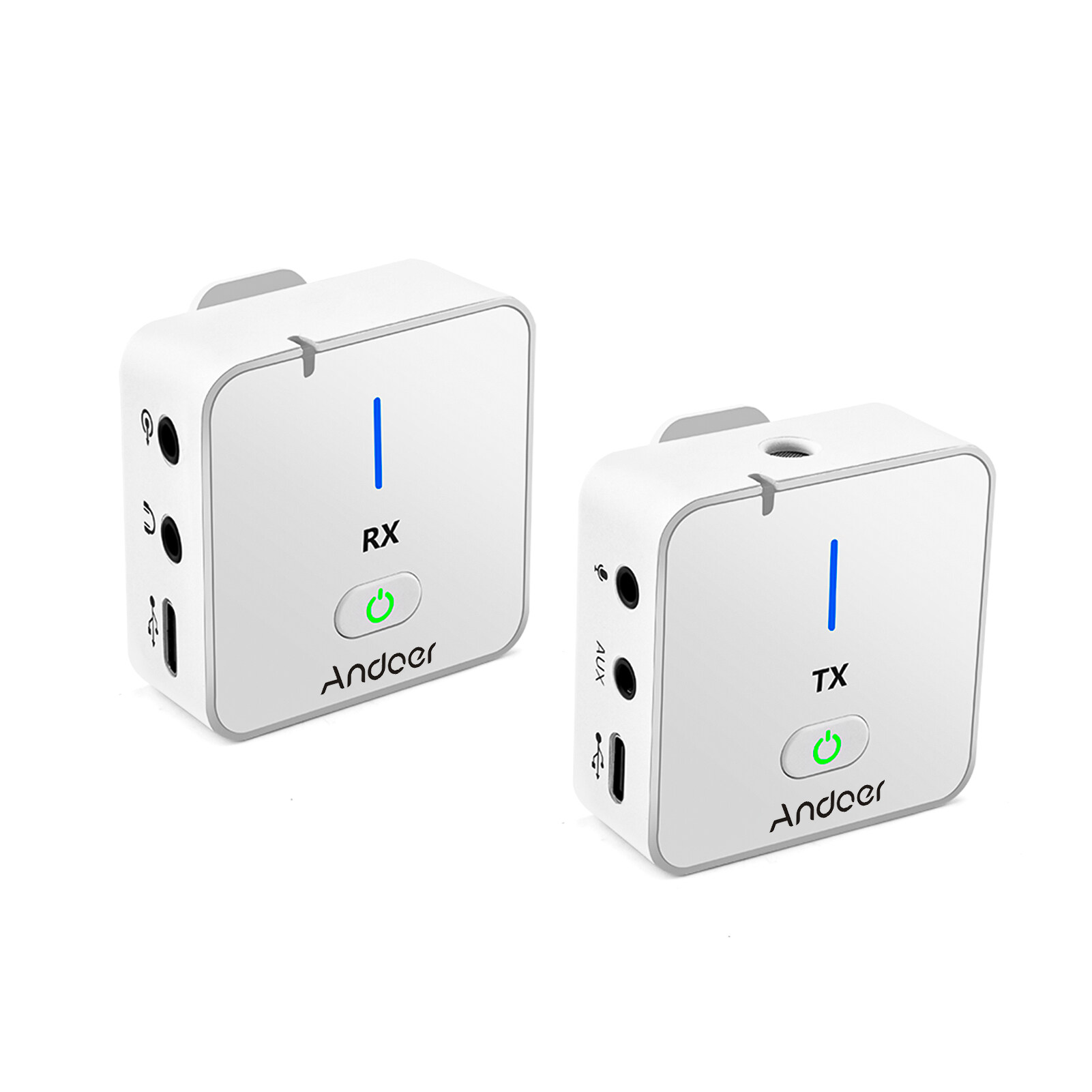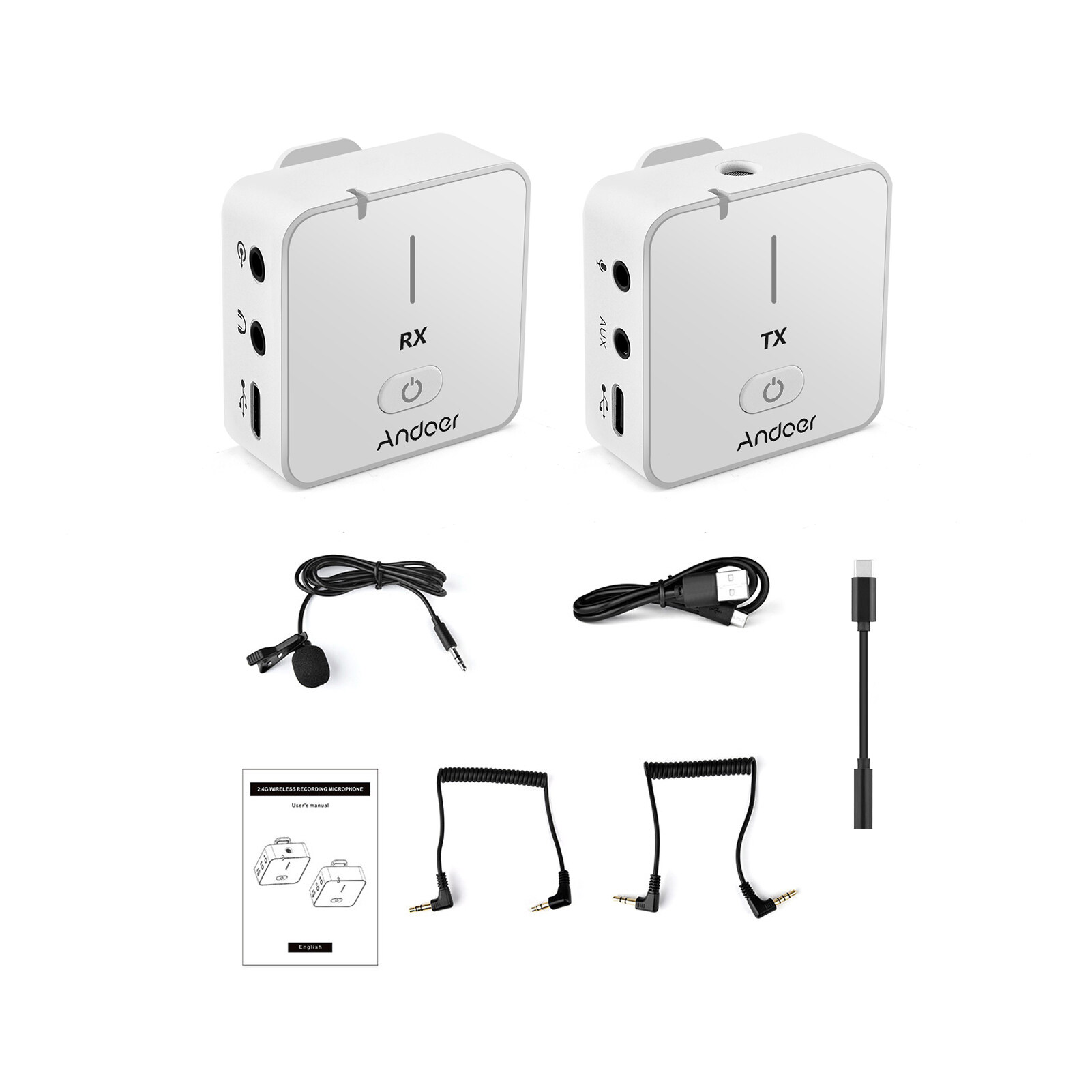 Andoer MX5 2.4G Wireless Recording Microphone System with Transmitter Receiver Clip-on Lavalier Mic 50M Effective Range Built-in BT for Type-C & 3.5mm Smartphone DSLR Camera DV Vlog Video Recording In