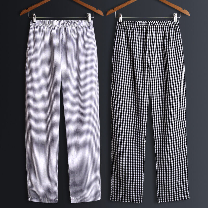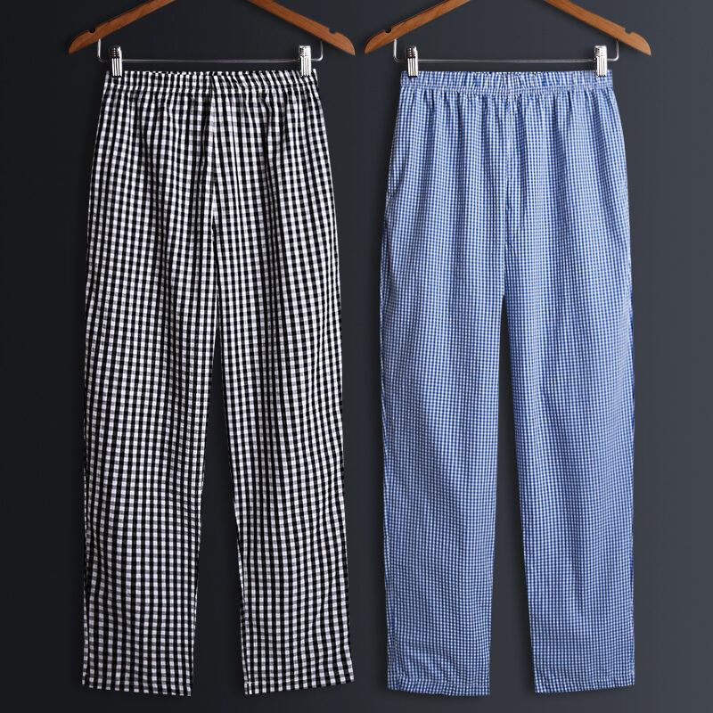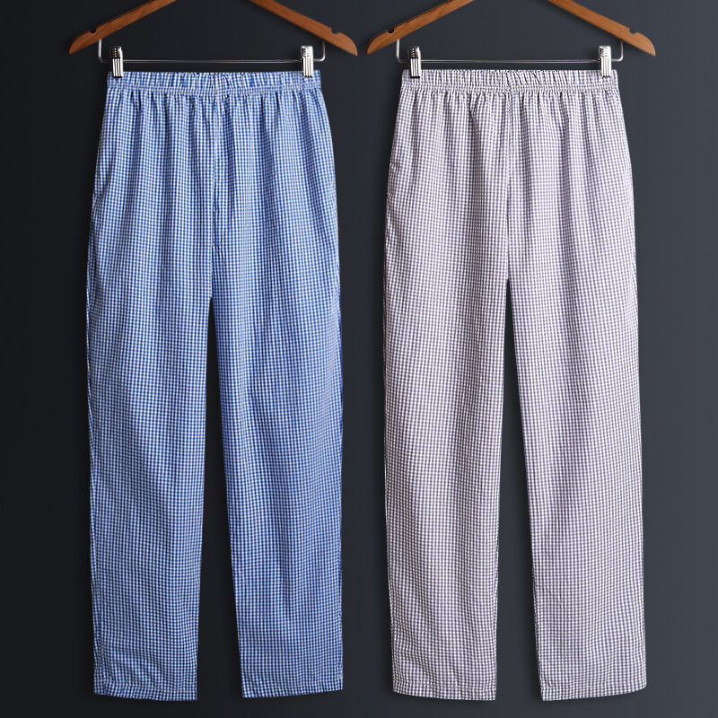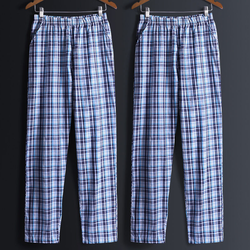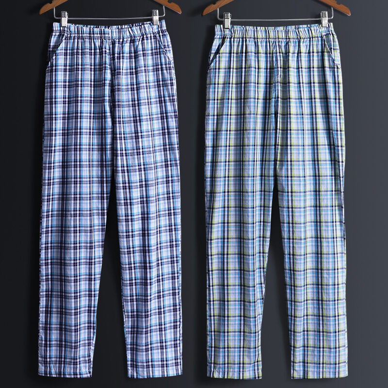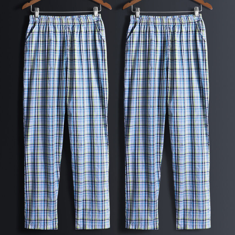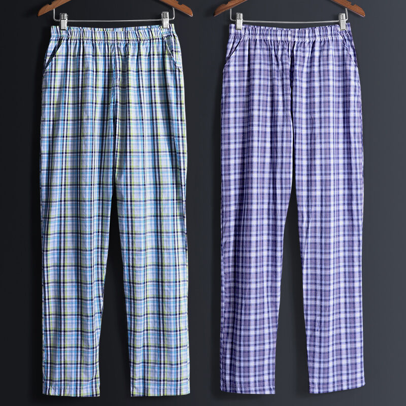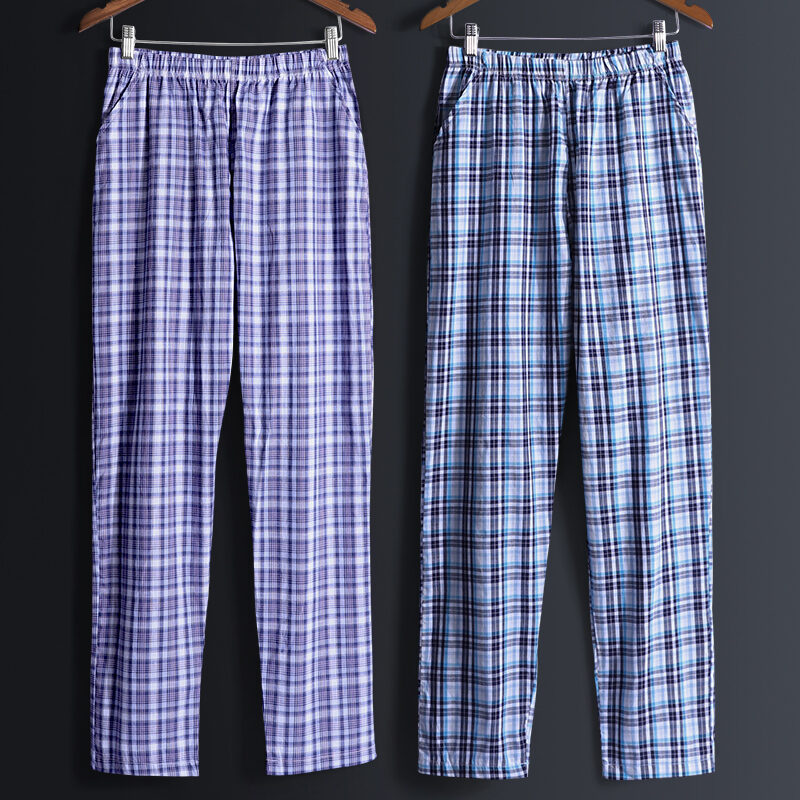 2 Pieces Pajamas Men's Trousers Cotton Home Pants Loose Cotton Plaid Spring and Autumn Thin Home Pants Summer Air Conditioning Pants