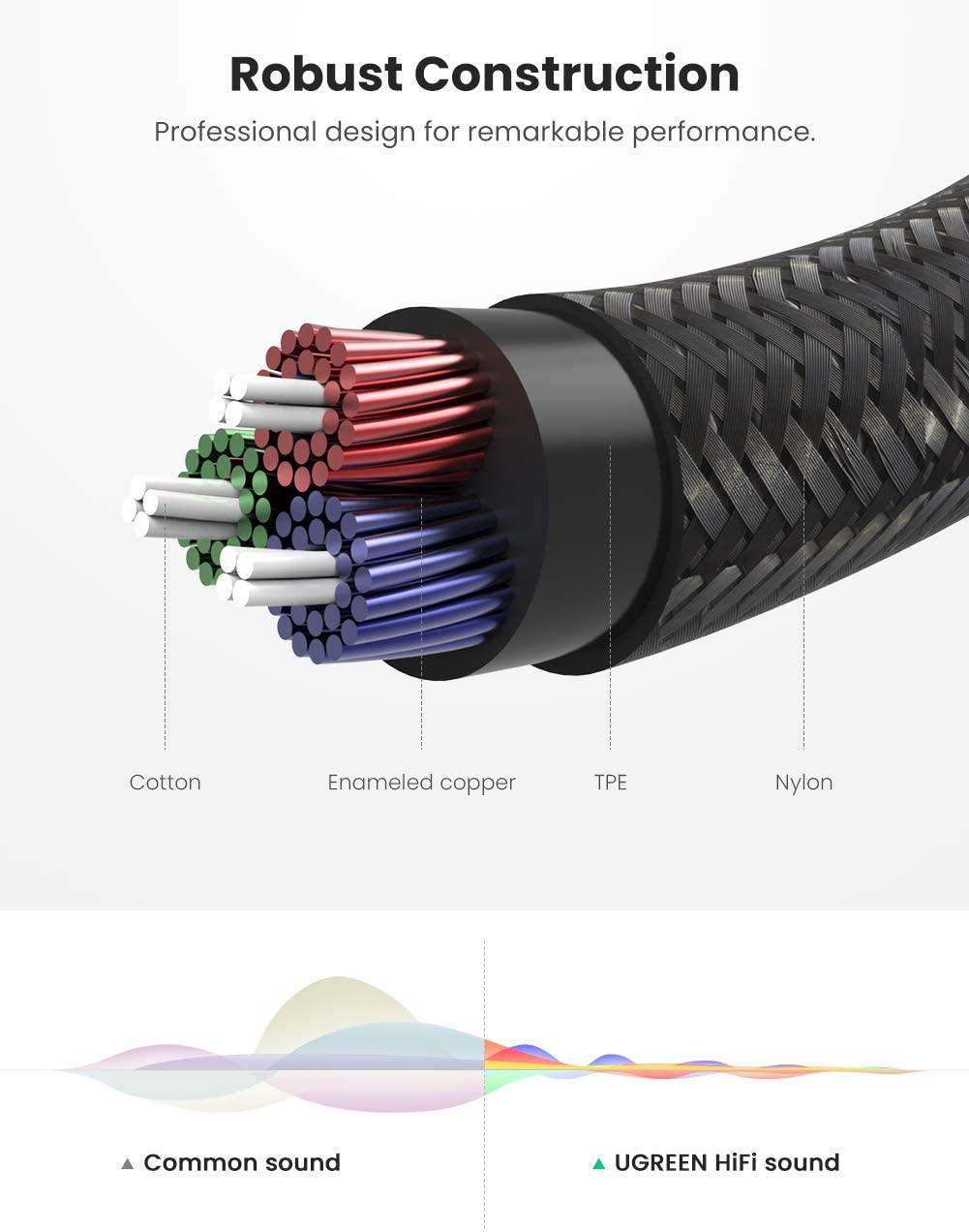 UGREEN 3.5mm Audio Cable, Stereo Auxiliary AUX Cord Gold-Plated Male to Male Braided Cable for Car, Home Stereos