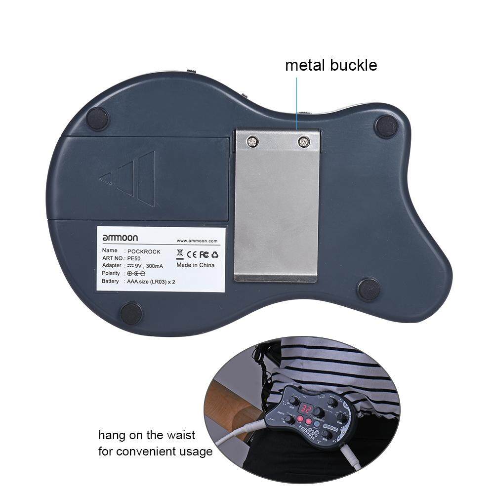 ammoon PockRock is a portable guitar multi-effects pedal. 5 effect modules with 15 effect types, 40 drum rhythms, 16 preset patches and 16 user patches. It is not only a sound library, but also allows you to create your own sound library. With headphone out and AUX in, you can enjoy your playing at night and no need to worry about disturbing others.
