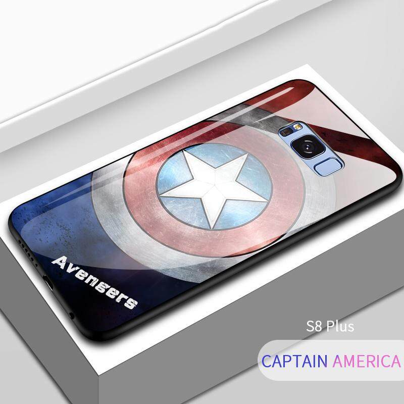 Marvel Avengers Superhero Ironman Spiderman Shockproof Phone Case Back Glass Cover For Samsung Galaxy S8 S8 + Plus Phone case TPU Protective Casing cover