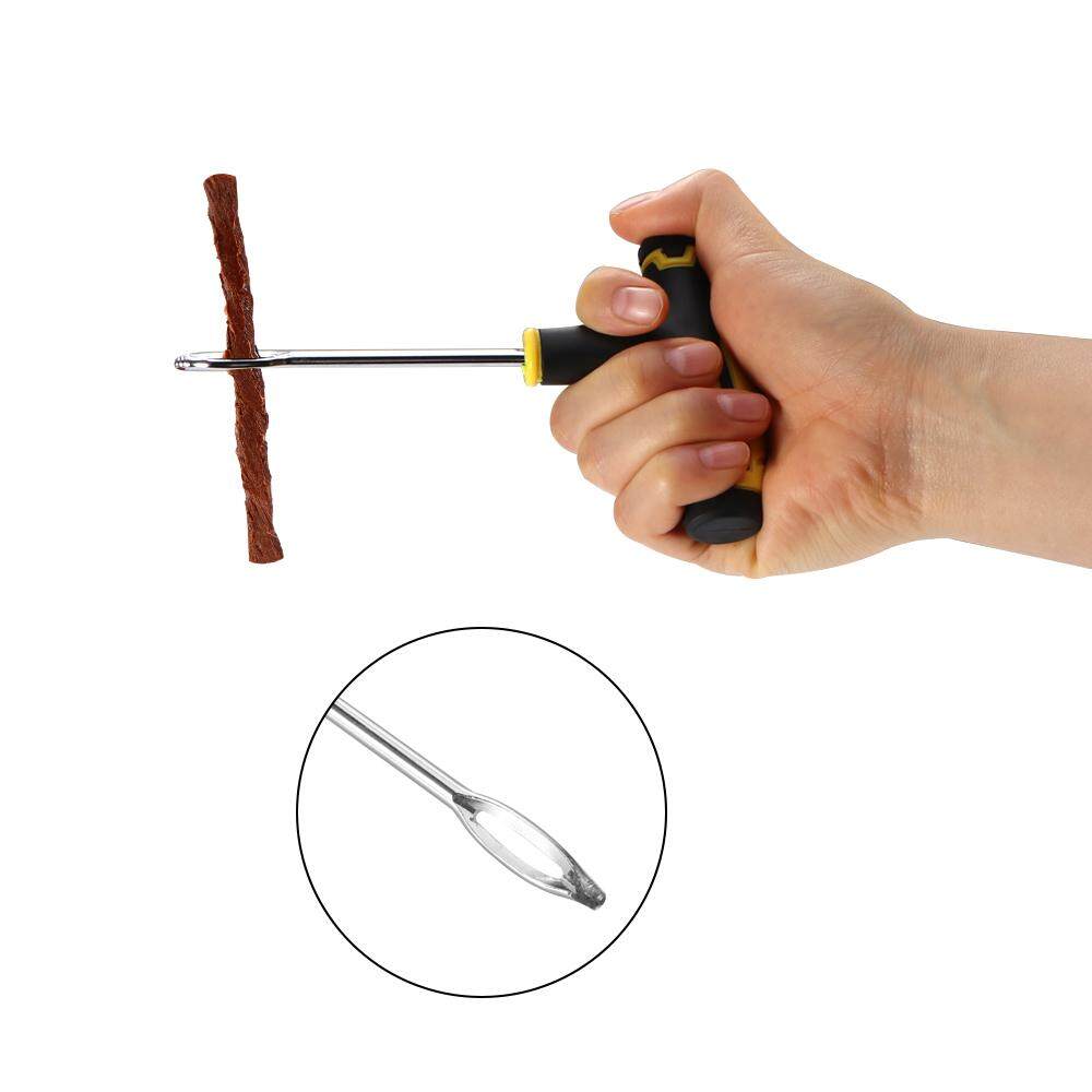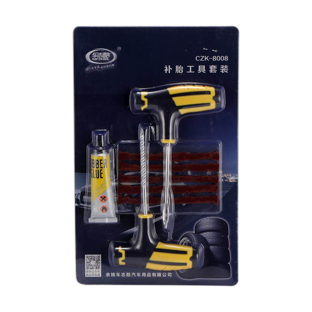 One set perfect tire repairing tool including 1 Tire Repair Glue, 5 Tire Repair Patches, 1 Drill, 1 Thread Drill. Your best tire plug kit, enables you to get to a service center safely