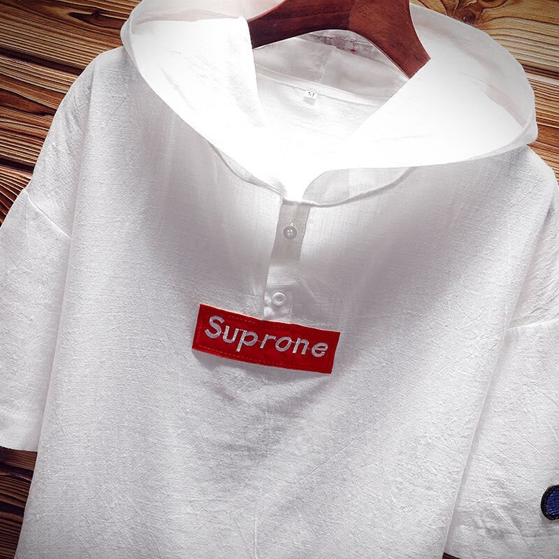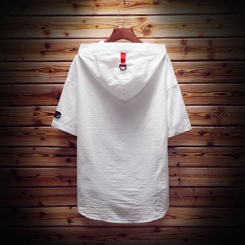 Japanese Applique Men's Summer Short Sleeve Sweater Men's plus Size Washed Cotton Hooded Half Sleeve Fashion Man T-shirt
