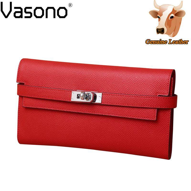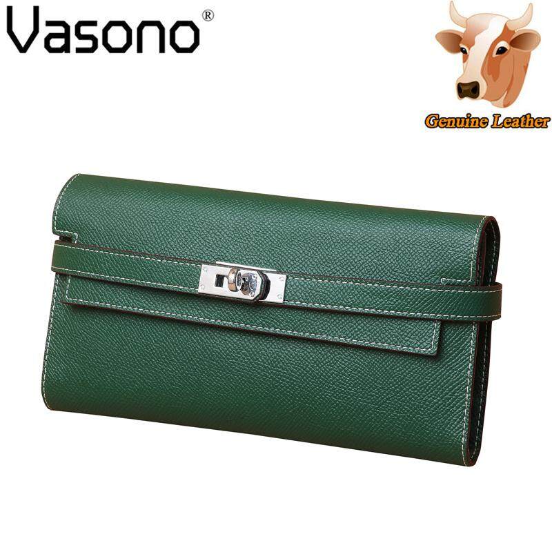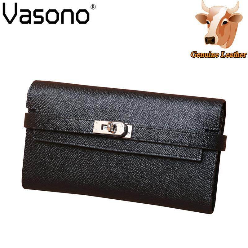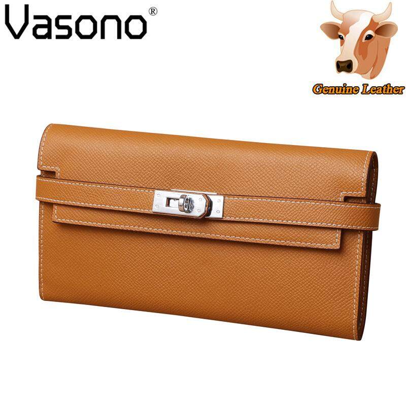 Vasono High Quality Italian Imported Genuine Cow Leather Epsom Birkin Long Clutch Wallet Women Purse Money Clip Holder